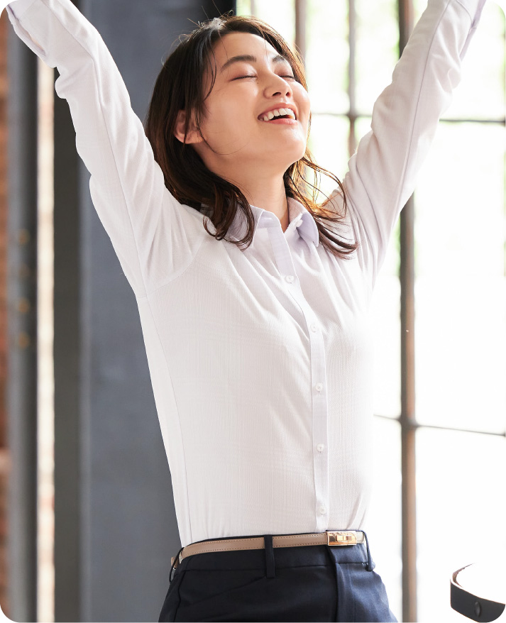 完全ノーアイロン※2を実現。※4 JIS(日本工業規格)が定める、洗濯後のシワの残り具合を表す指標。W&W性5.0級はシワのない状態と同等、3.2級以上(シワカット率50%以上)が形態安定シャツとなります。
