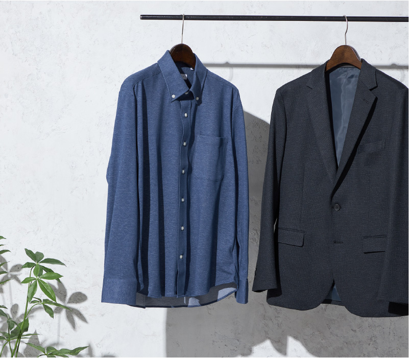 涼やかさと動きやすさを両立しつつ、ジャケットはやや細身に、パンツはすっきりとしたテーパードラインにすることで、モダンな着こなしを楽しめます。