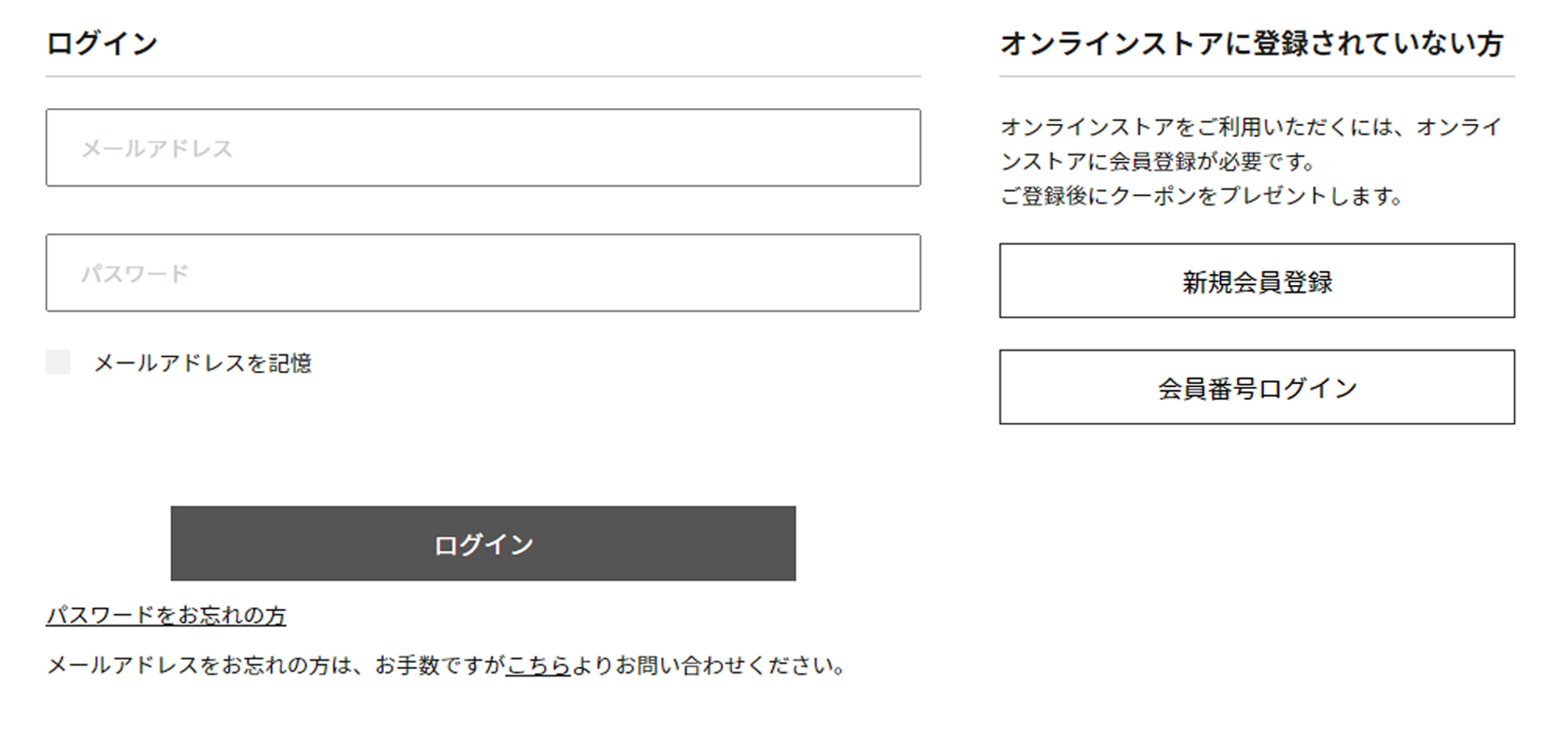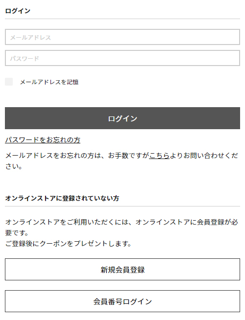 新規会員登録・会員番号ログインを選択し次のページへ進む