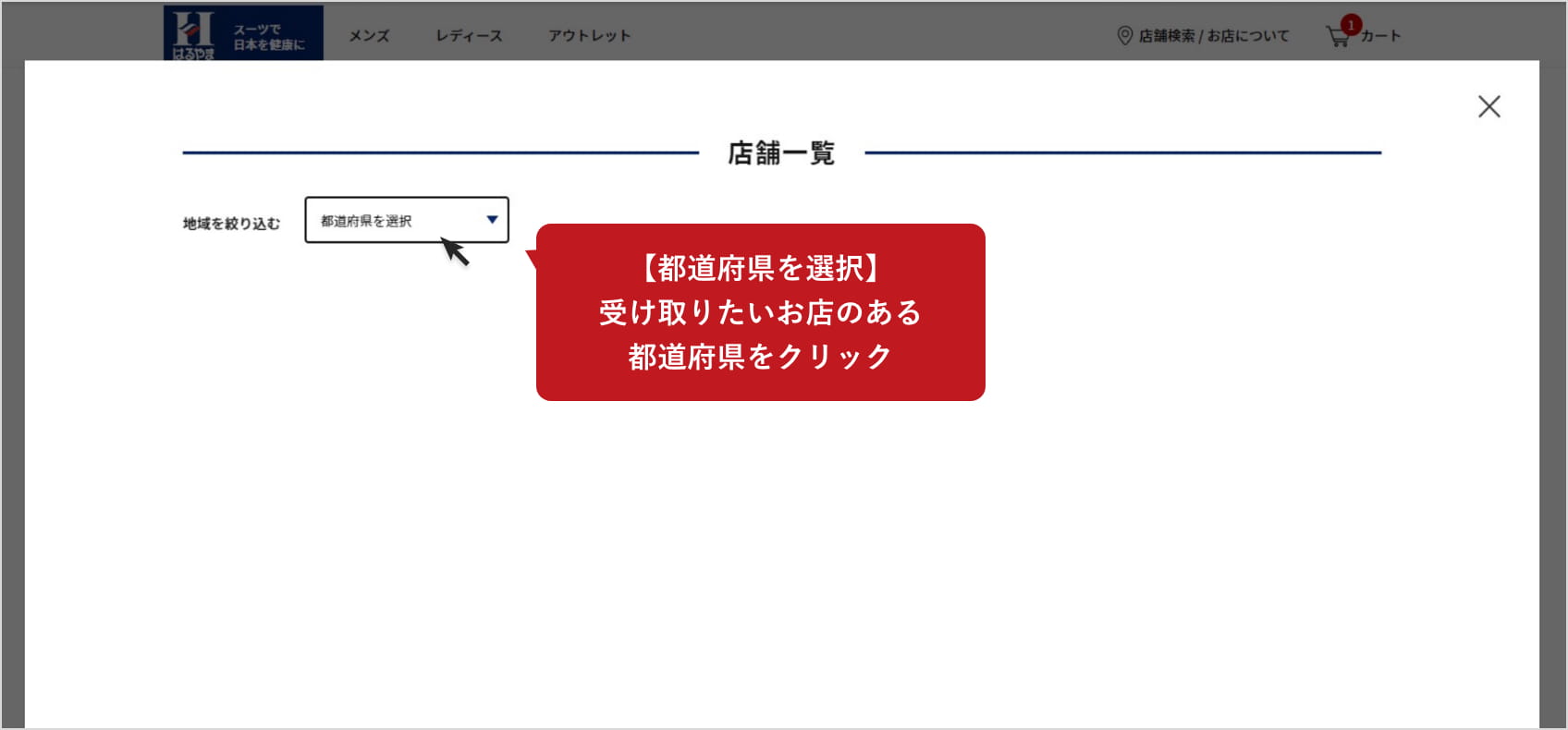 店舗一覧より受け取りたい店舗の都道府県を選択してください