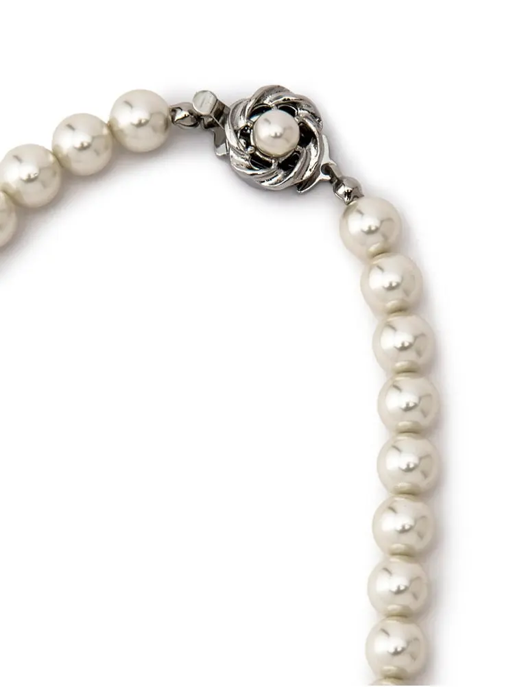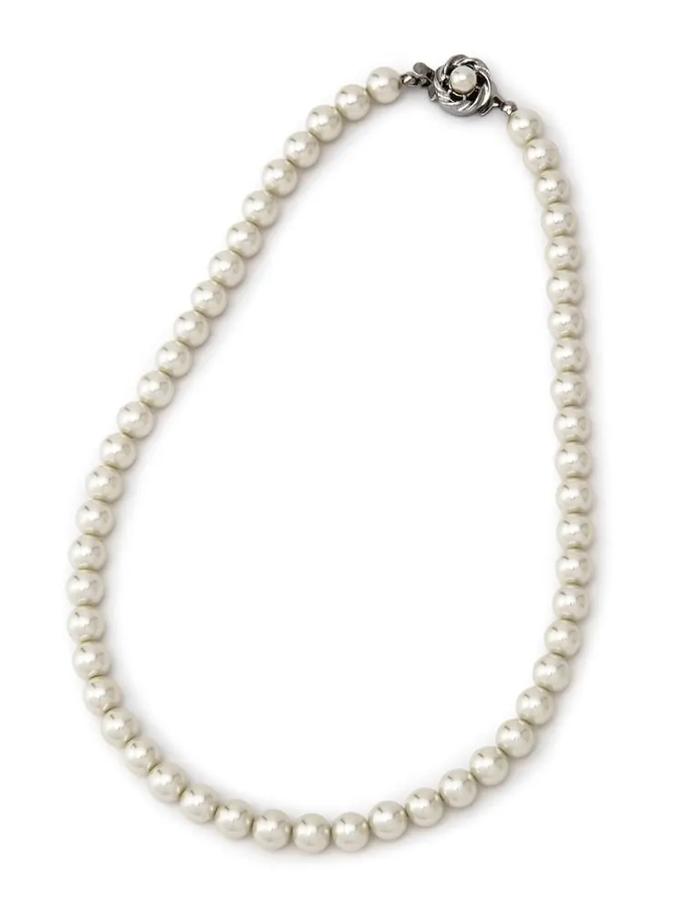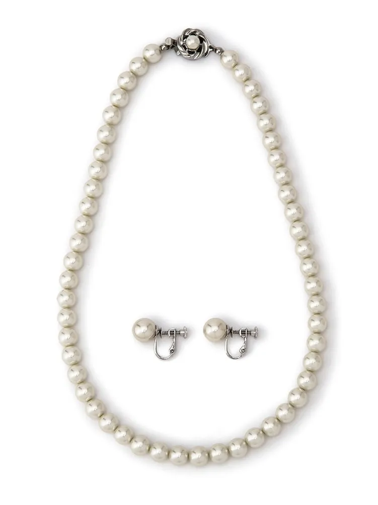 パールネックレス&イヤリングセット(硝子パール) ホワイト【レディース】(M.グレー)