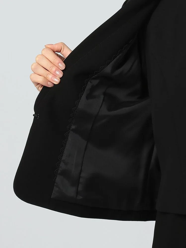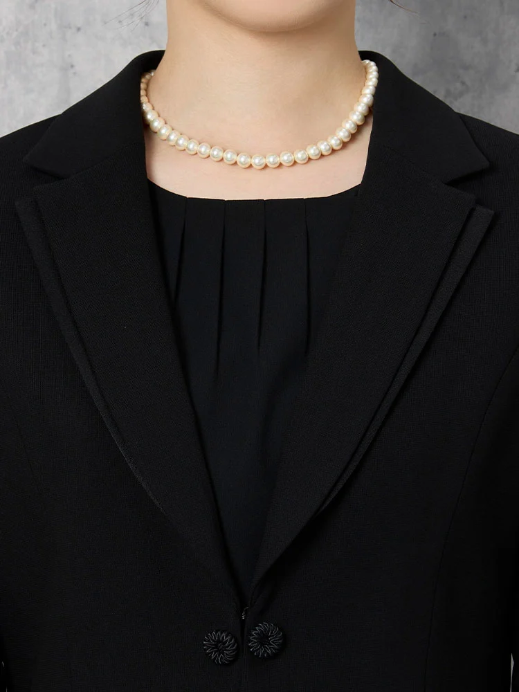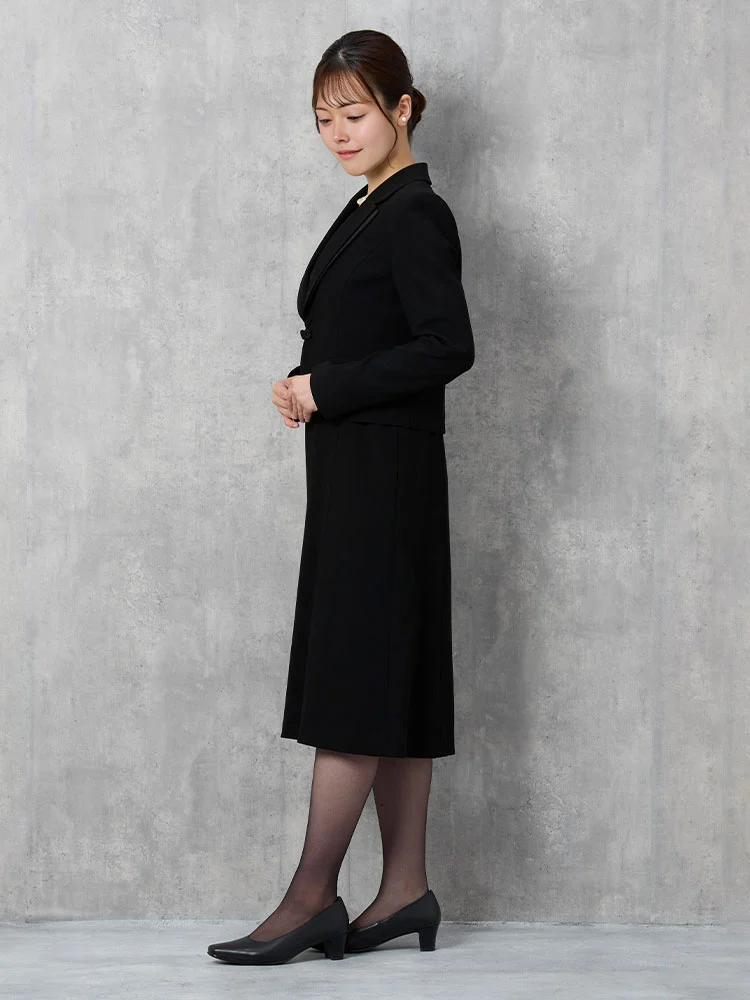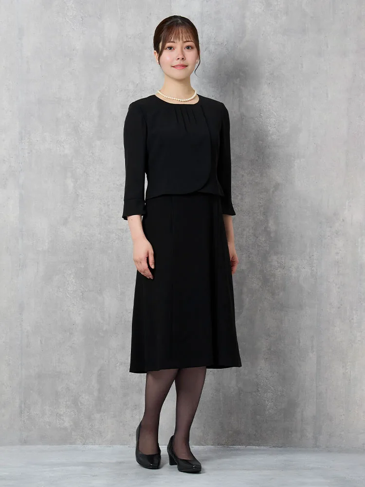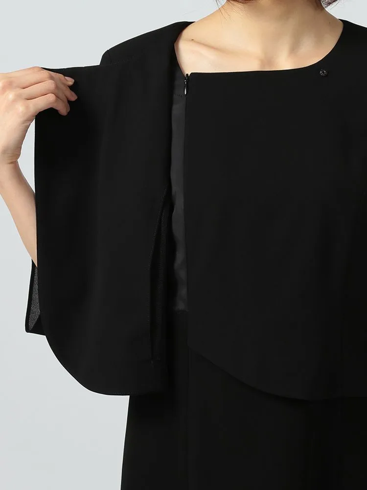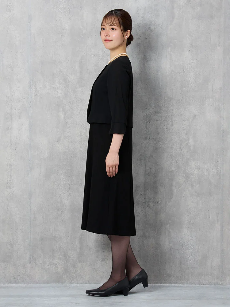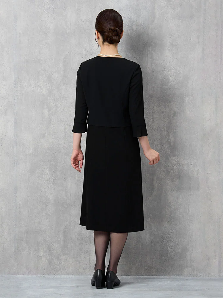 【即納】【WEB限定フォーマル】ロールカラーアンサンブルジャケット/ワンピース黒無地通年礼服【レディース】