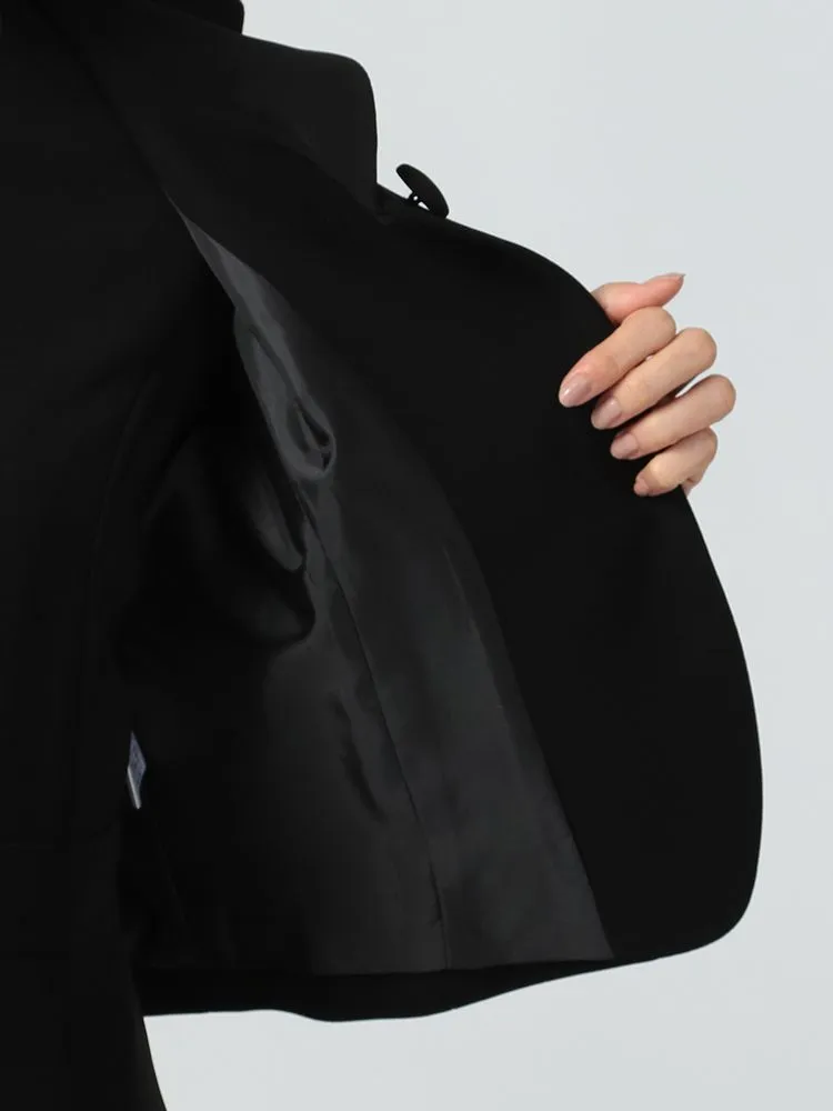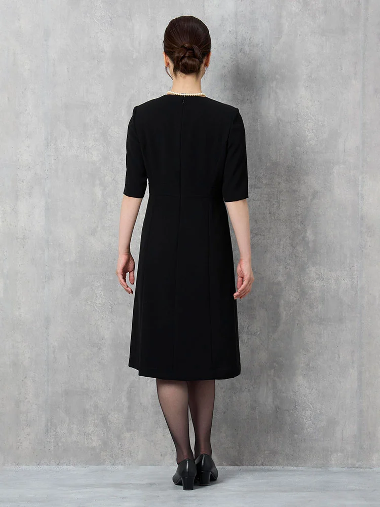 【即納】【WEB限定フォーマル】ロールカラーアンサンブルジャケット/ワンピース黒無地通年礼服【レディース】