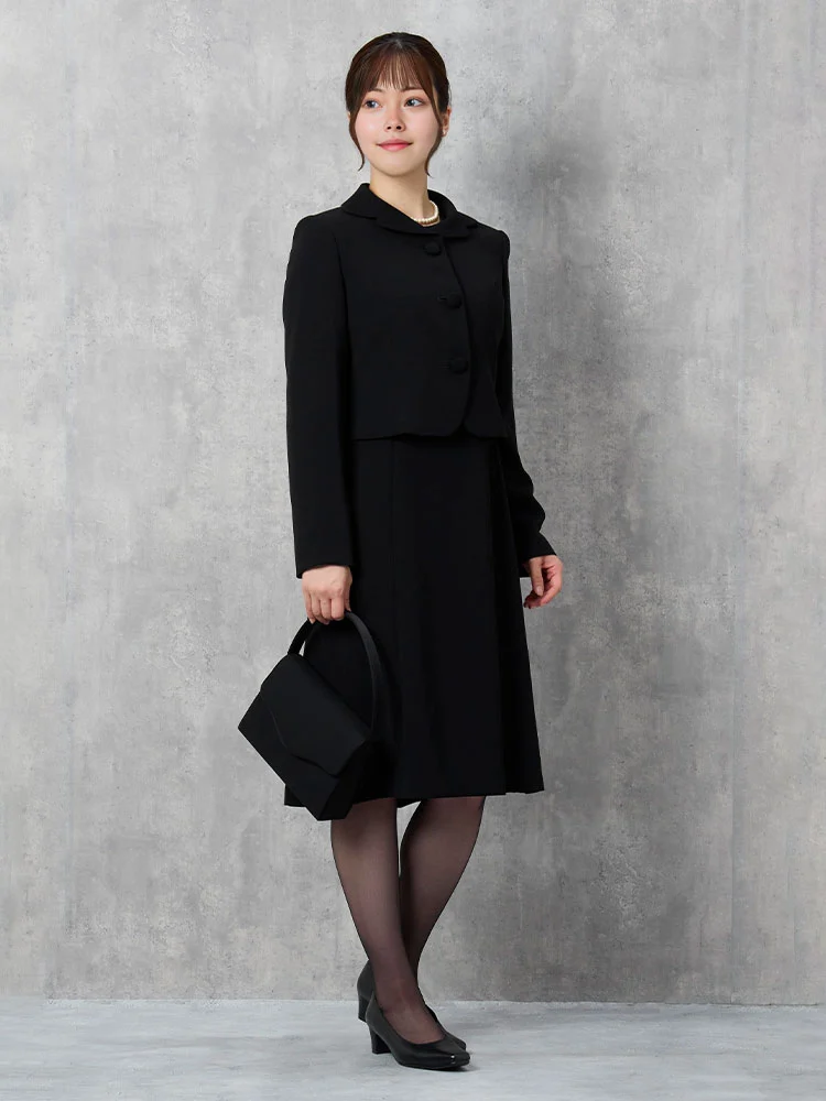 揃えて安心の、クラシカルなブラックフォーマル用アンサンブルです。