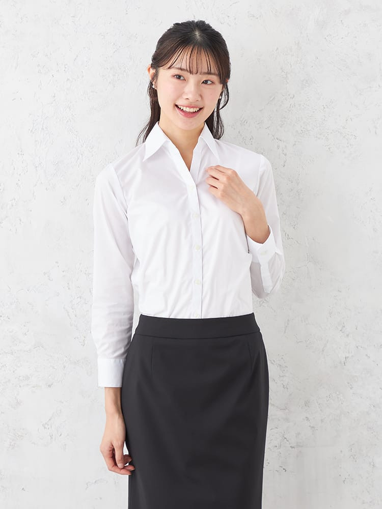 【形態安定】ブラウス 長袖 GraceField 白ブロード スキッパー ストレッチ リクルート 通年【レディース】