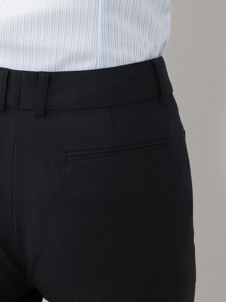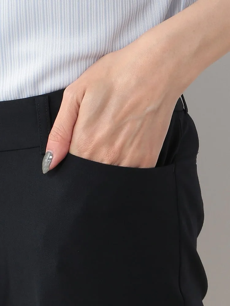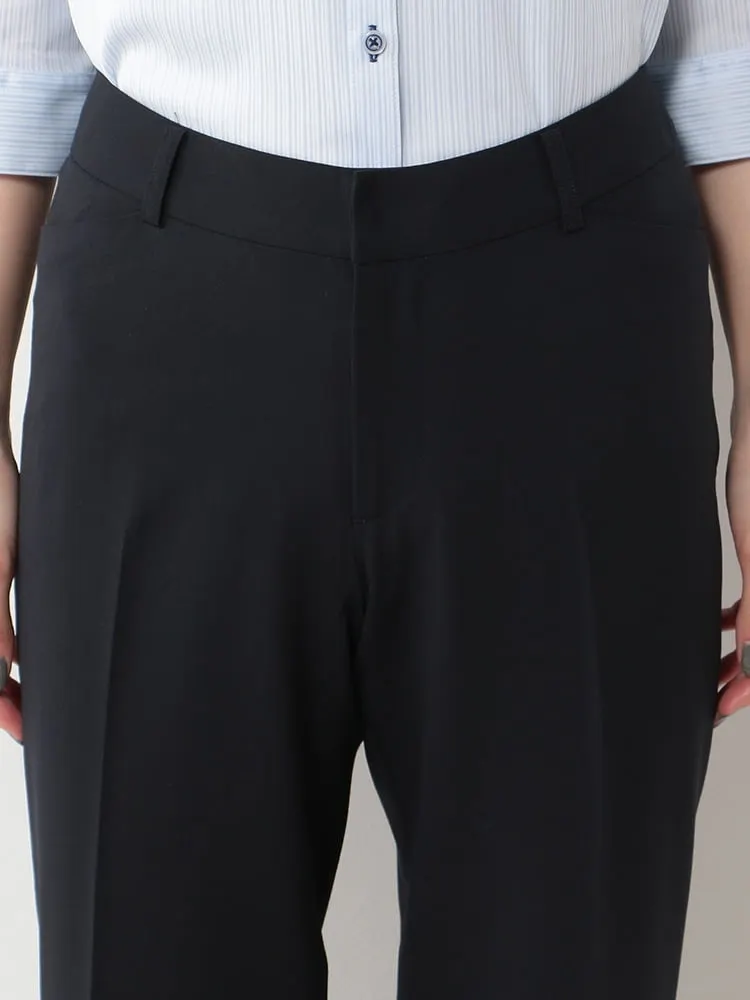 【ウォッシャブル】パンツストレートストレッチ黒無地S&MKnightsbridge通年【レディース】