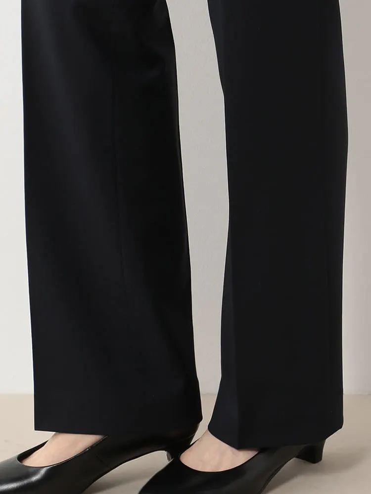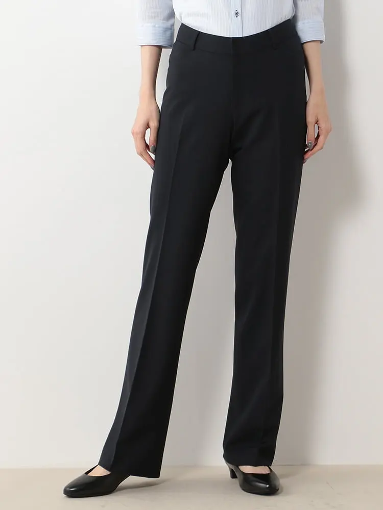 【ウォッシャブル】レディースストレートパンツ黒無地RENU生地使用SOFFICE通年【レディース】