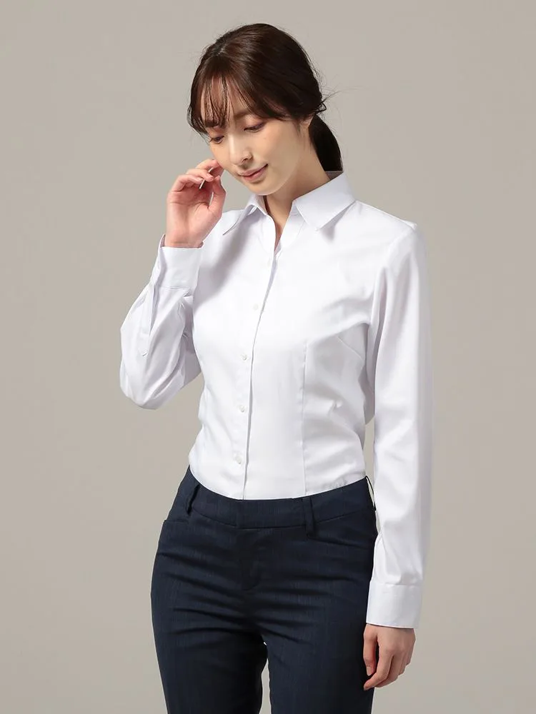 【形態安定】ブラウス長袖Gracefield白ブロードレギュラーカラー無地リクルート通年【レディース】