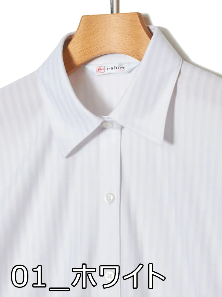 【完全ノーアイロン】ブラウス半袖シャツレギュラー【アイスライブ】冷感吸汗速乾白無地i-shirt春夏【レディース】