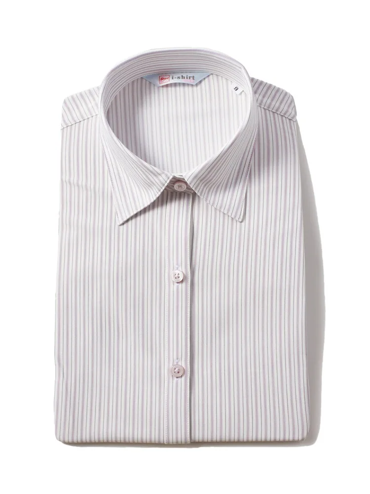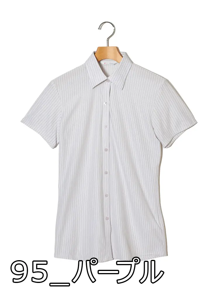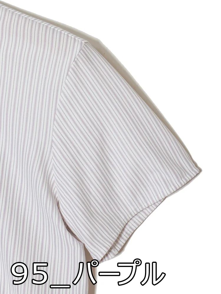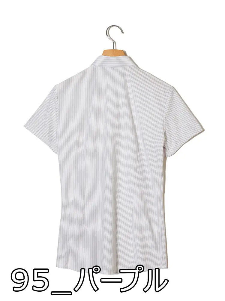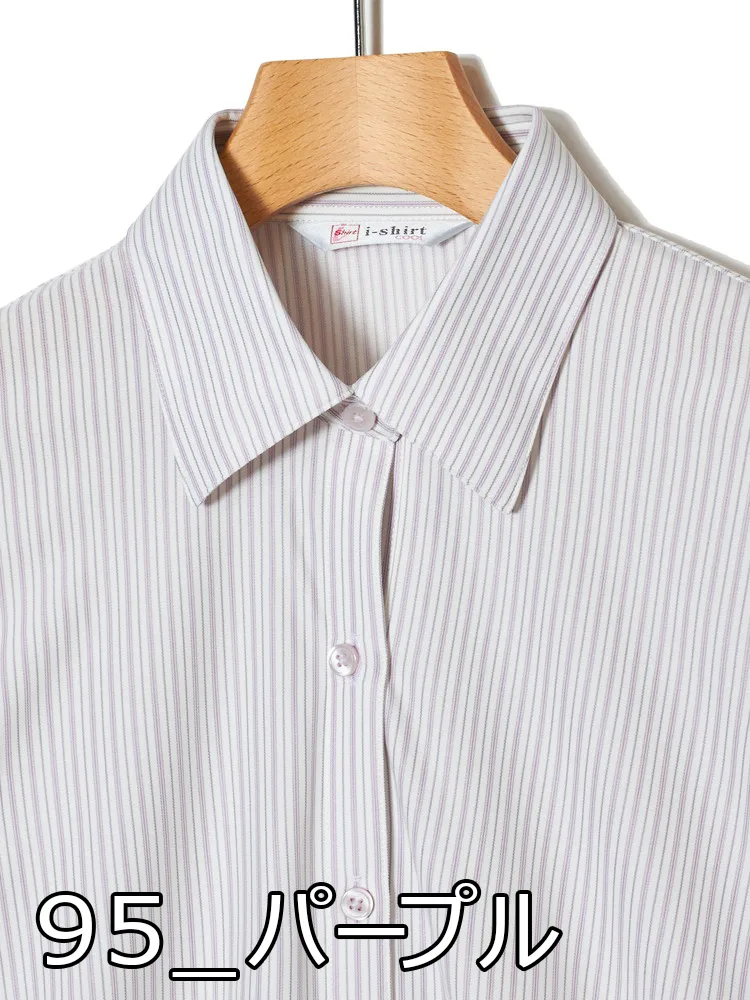 【完全ノーアイロン】ブラウス 半袖 レギュラー【アイスライブ】冷感 UVカット ストライプ ワイシャツ i-shirt 春夏【レディース】(パープル)