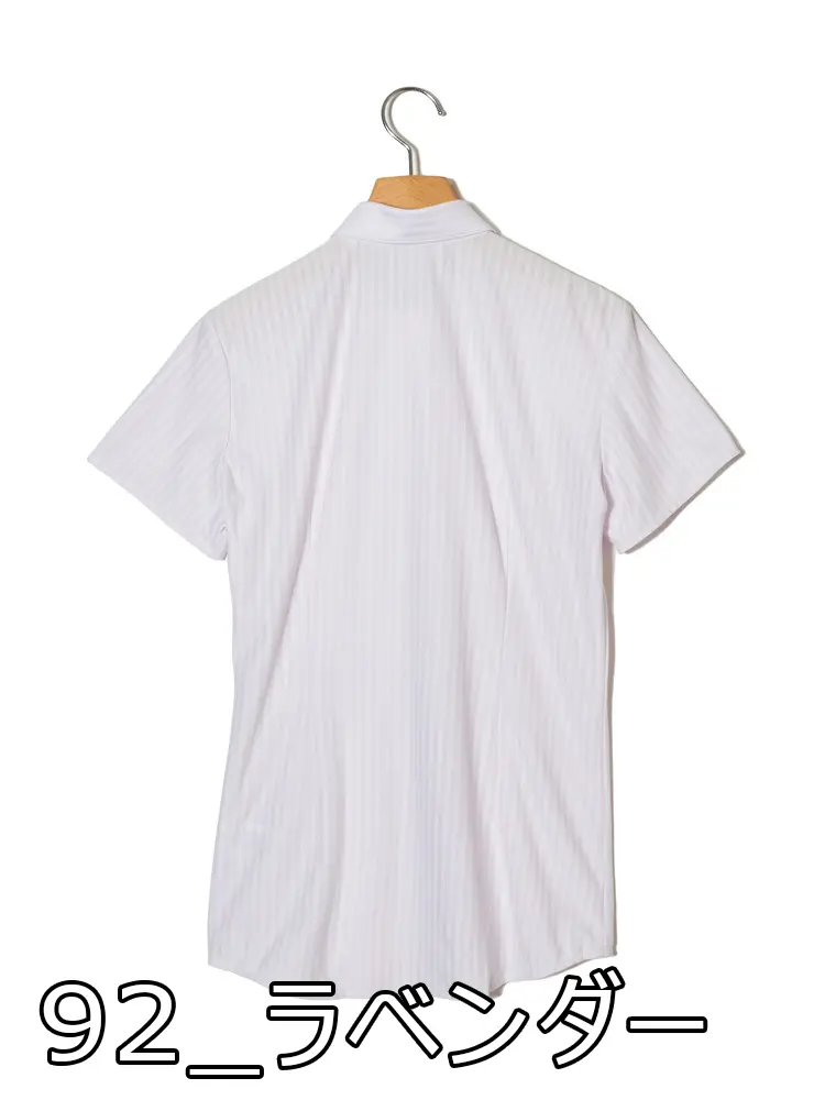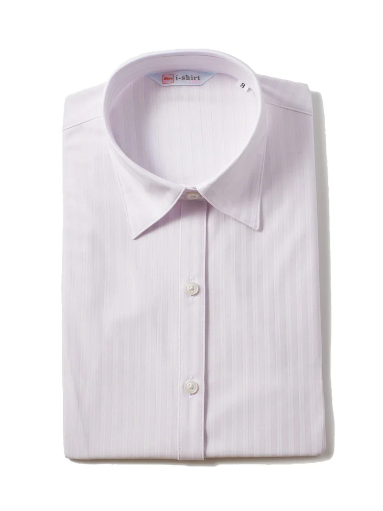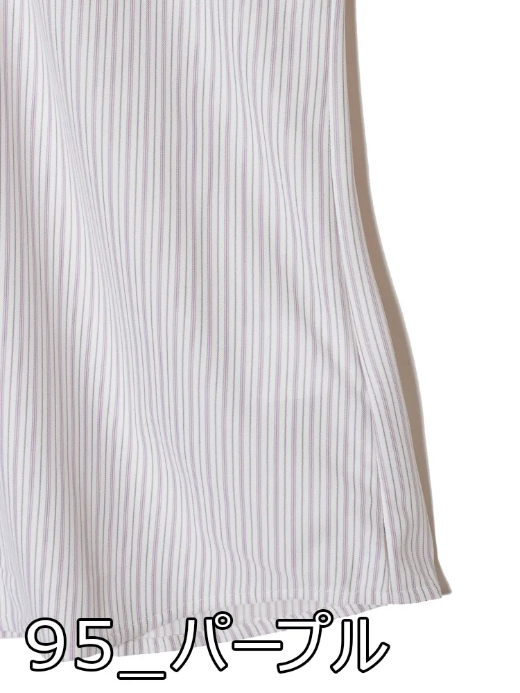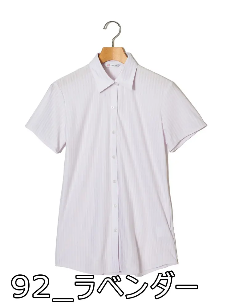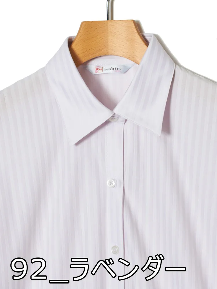 【完全ノーアイロン】ブラウス 半袖 レギュラー【アイスライブ】冷感 UVカット ストライプ ワイシャツ i-shirt 春夏【レディース】(パープル)