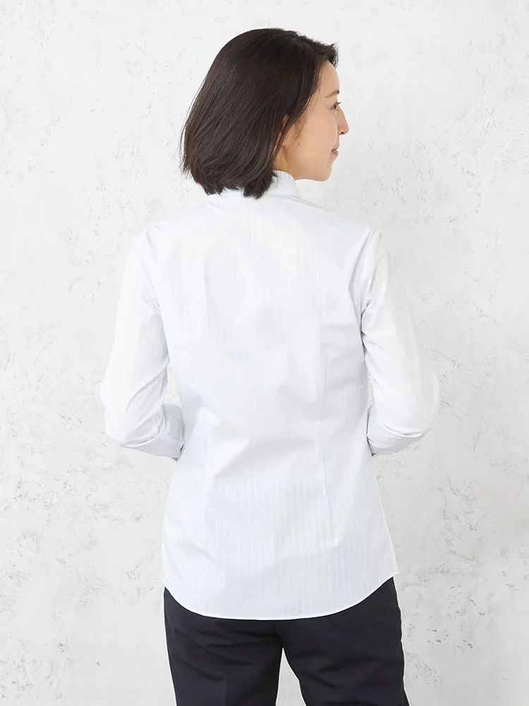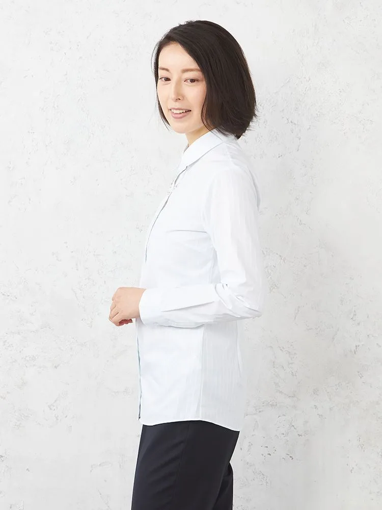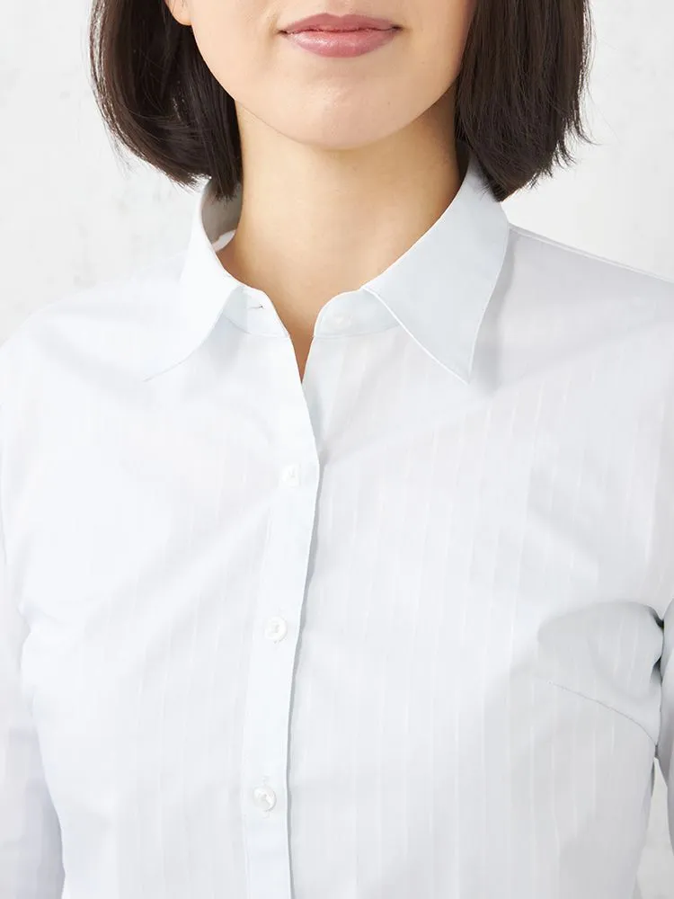 【形態安定】ブラウス長袖GraceField白ブロードスキッパーストレッチリクルート通年【レディース】