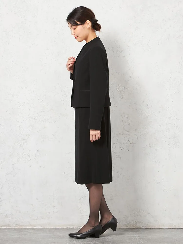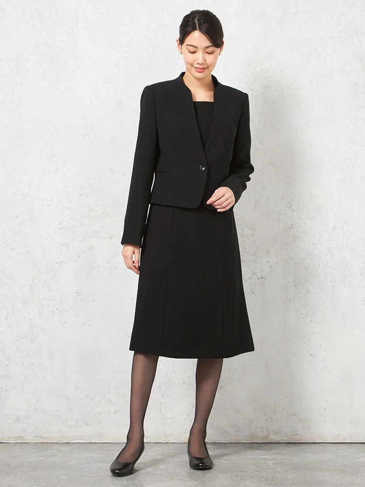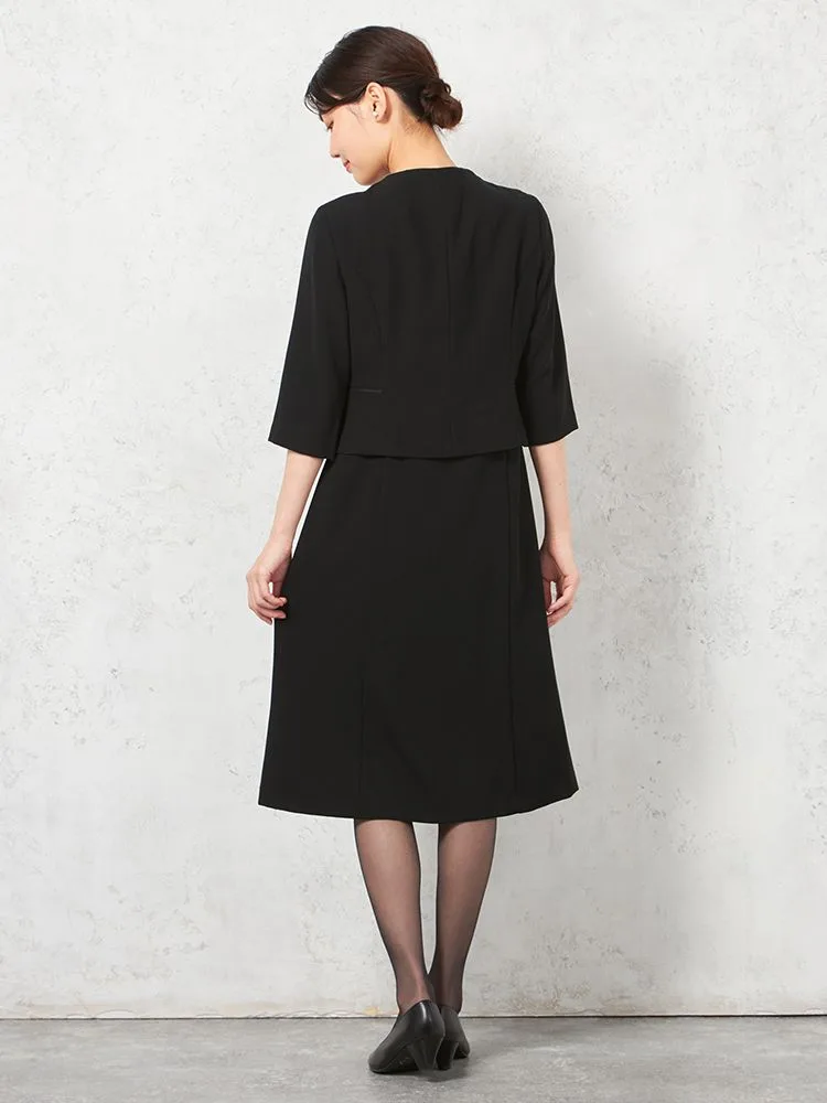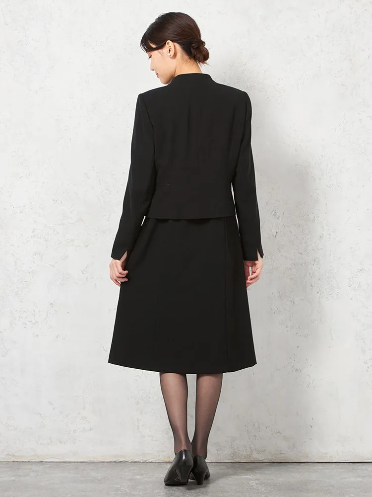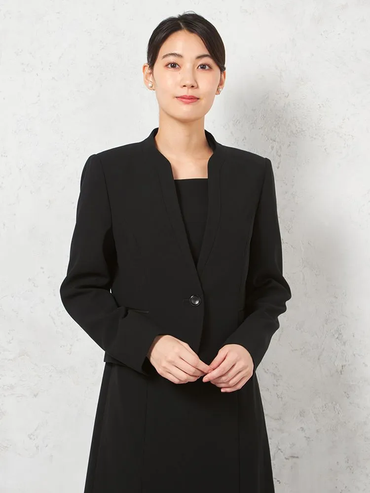 【フォーマル2点セット】スタンドカラージャケット/前開きワンピース アンサンブル ウォッシャブル ストレッチ ブラック 通年 礼服 SOFFICE【レディース】