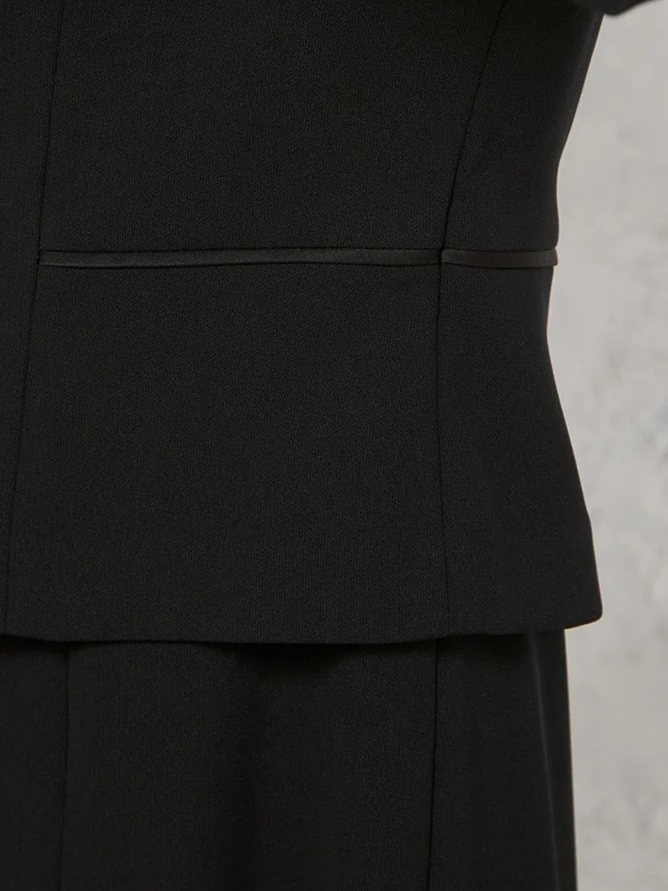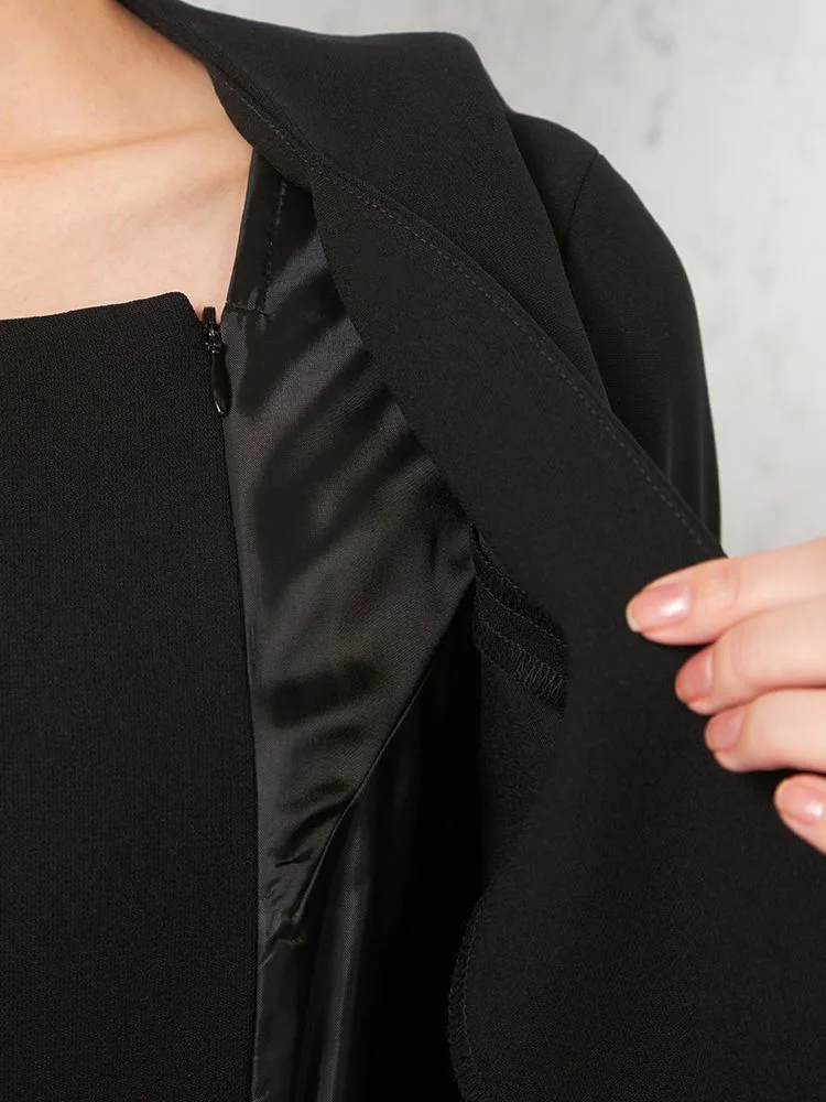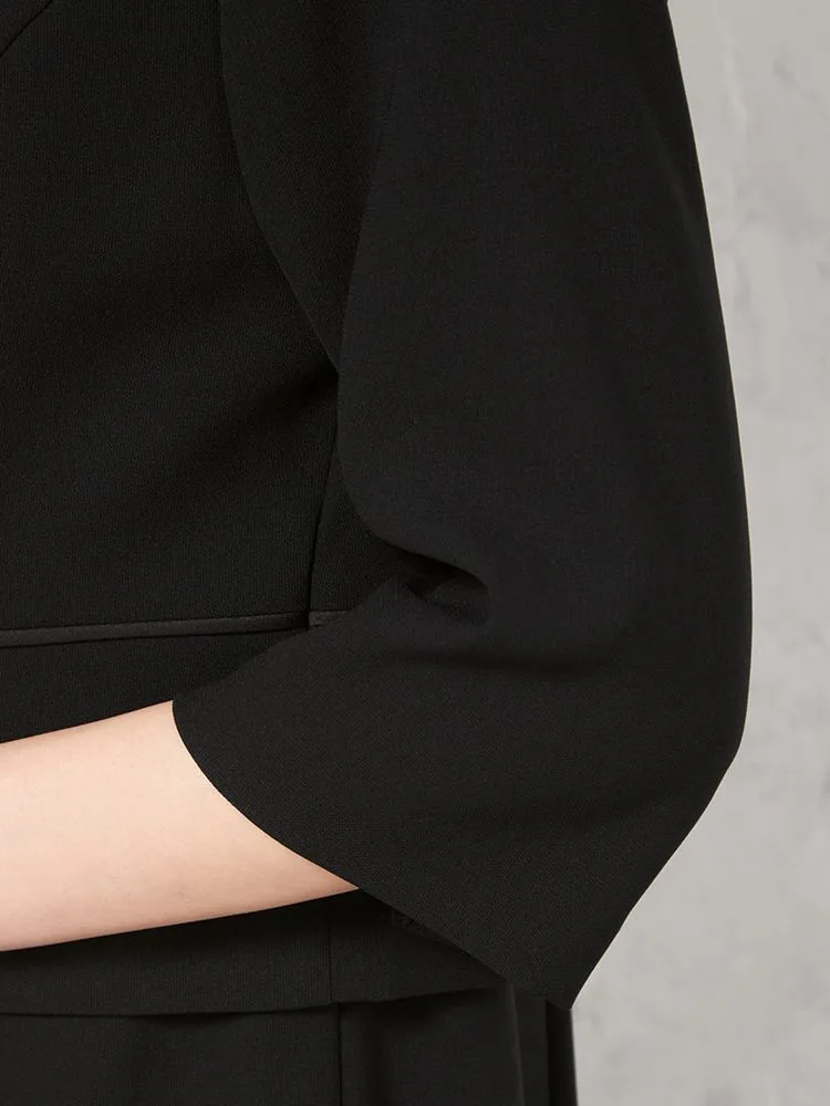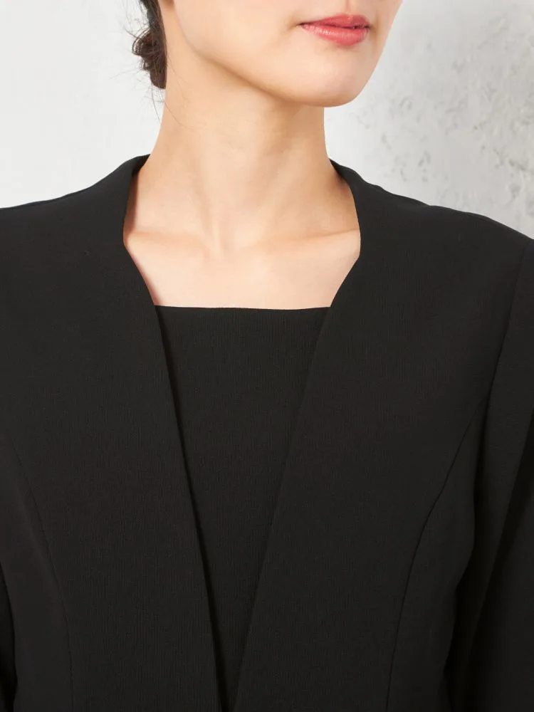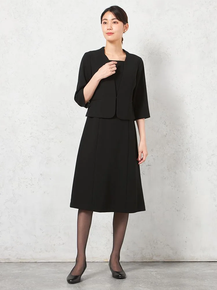 【フォーマル2点セット】スタンドカラージャケット/前開きワンピース アンサンブル ウォッシャブル ストレッチ ブラック 通年 礼服 SOFFICE【レディース】