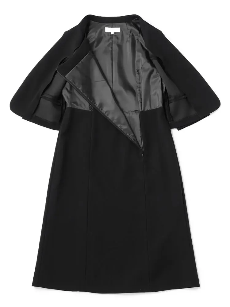 アンサンブル風の6分袖ワンピースとスタンドカラージャケットの2点セットです。