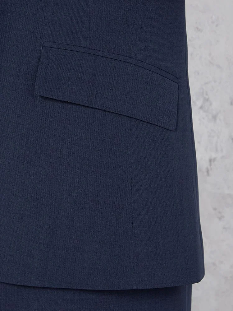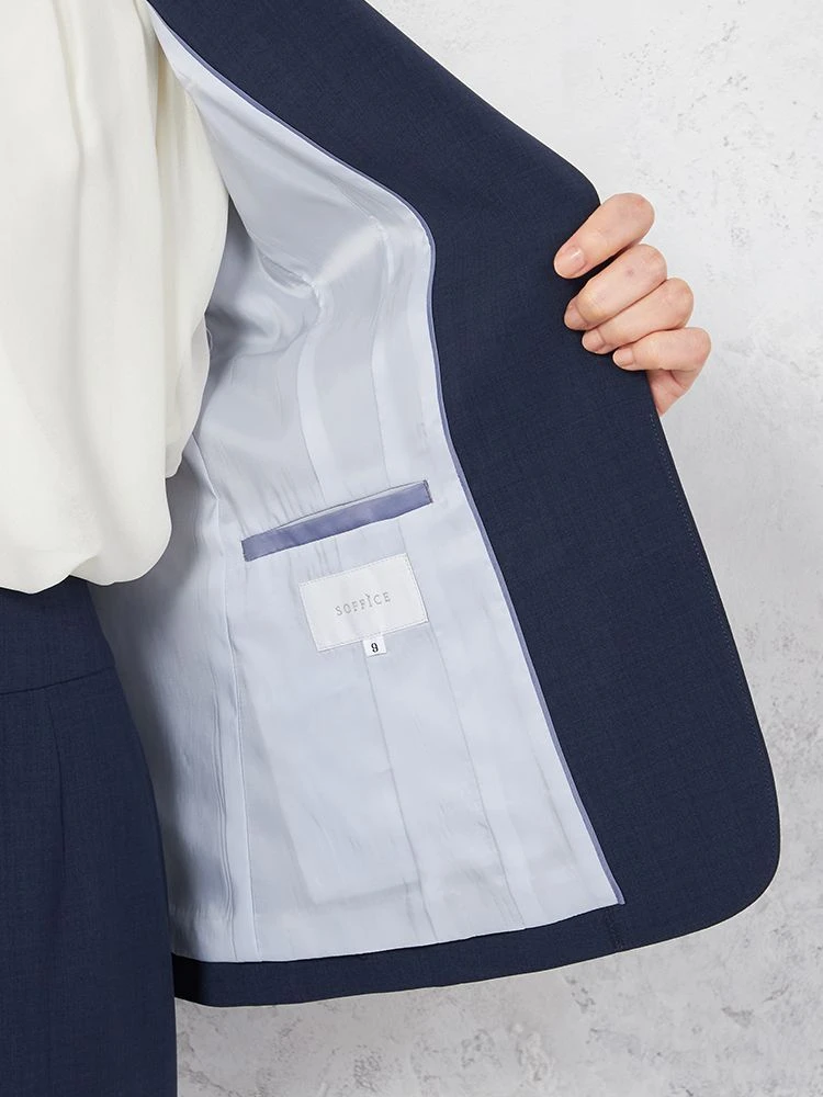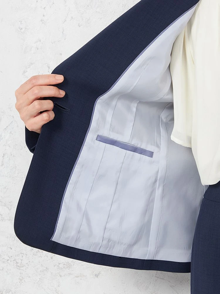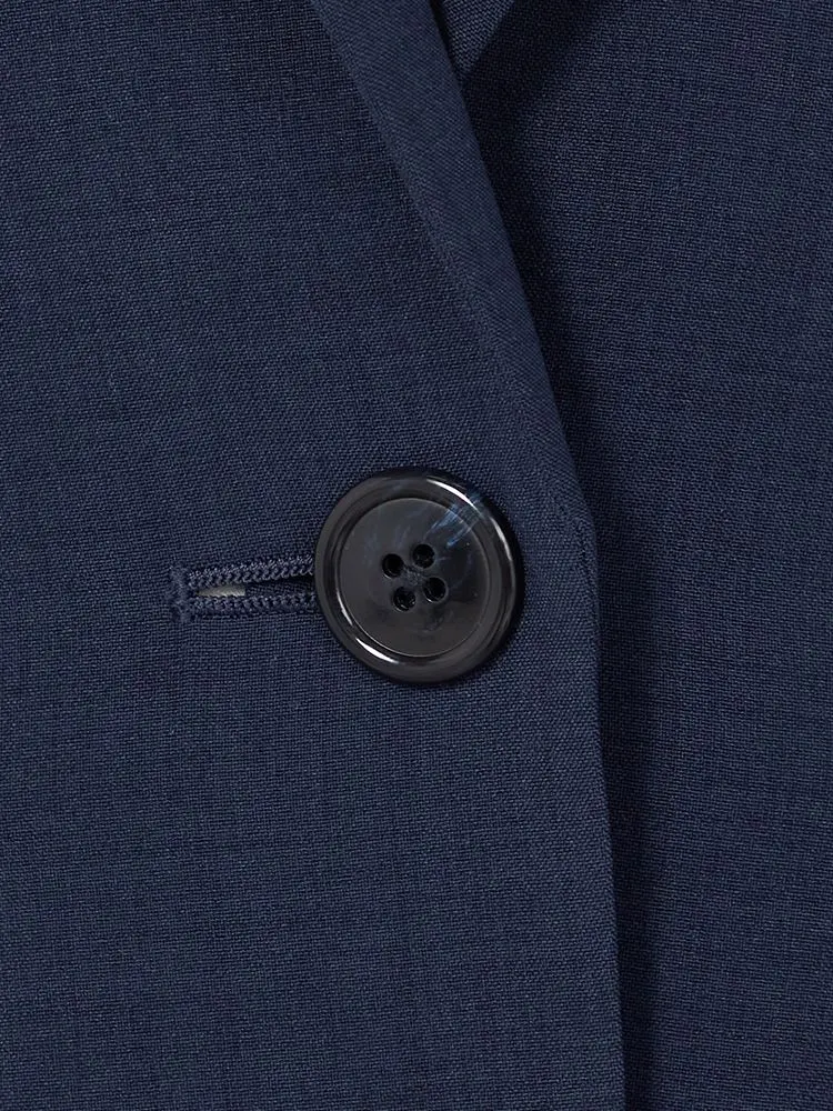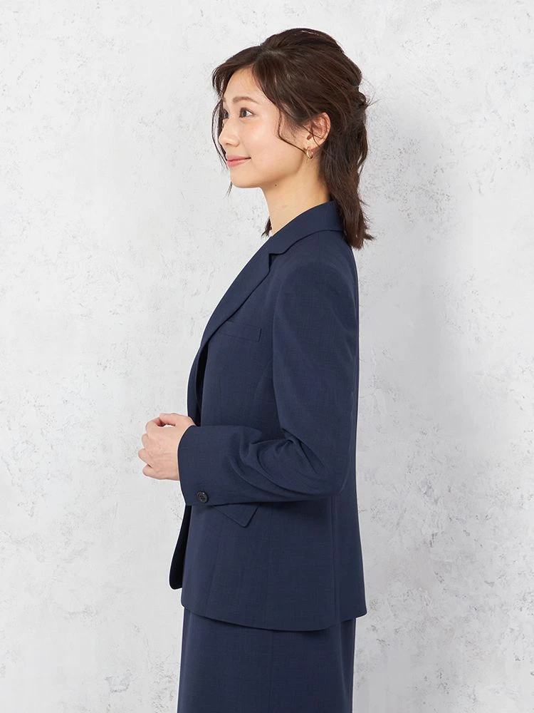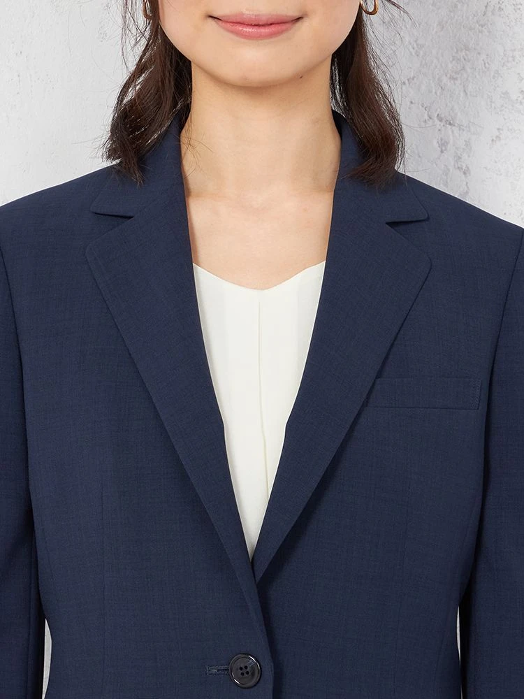 1つボタンのデザインで、シンプルかつスタイリッシュな印象を与えます。洗練されたシルエットが特徴です。