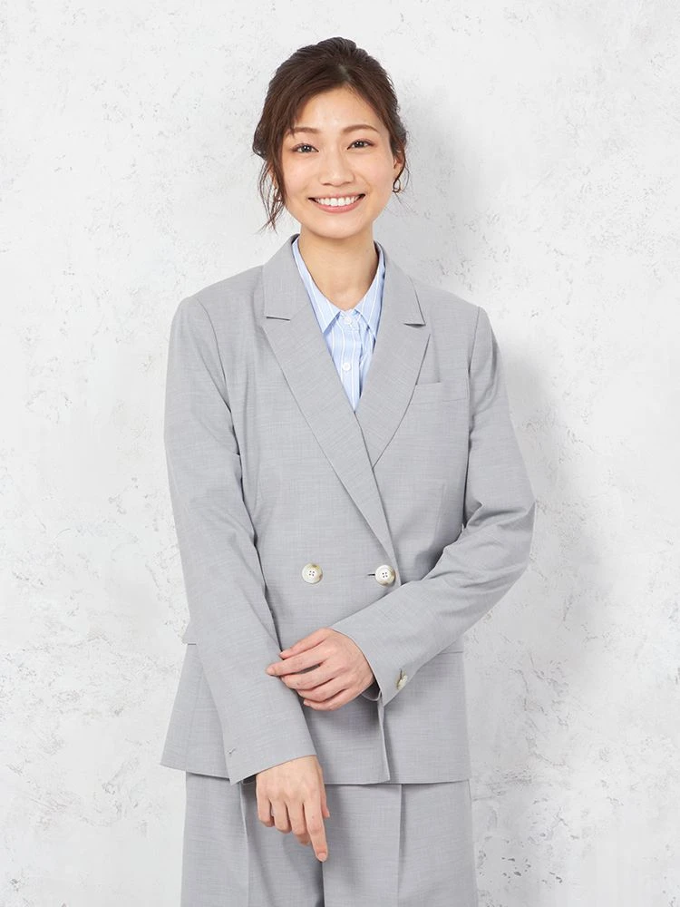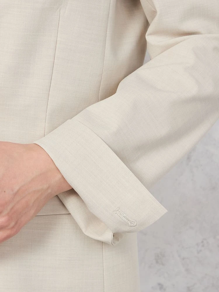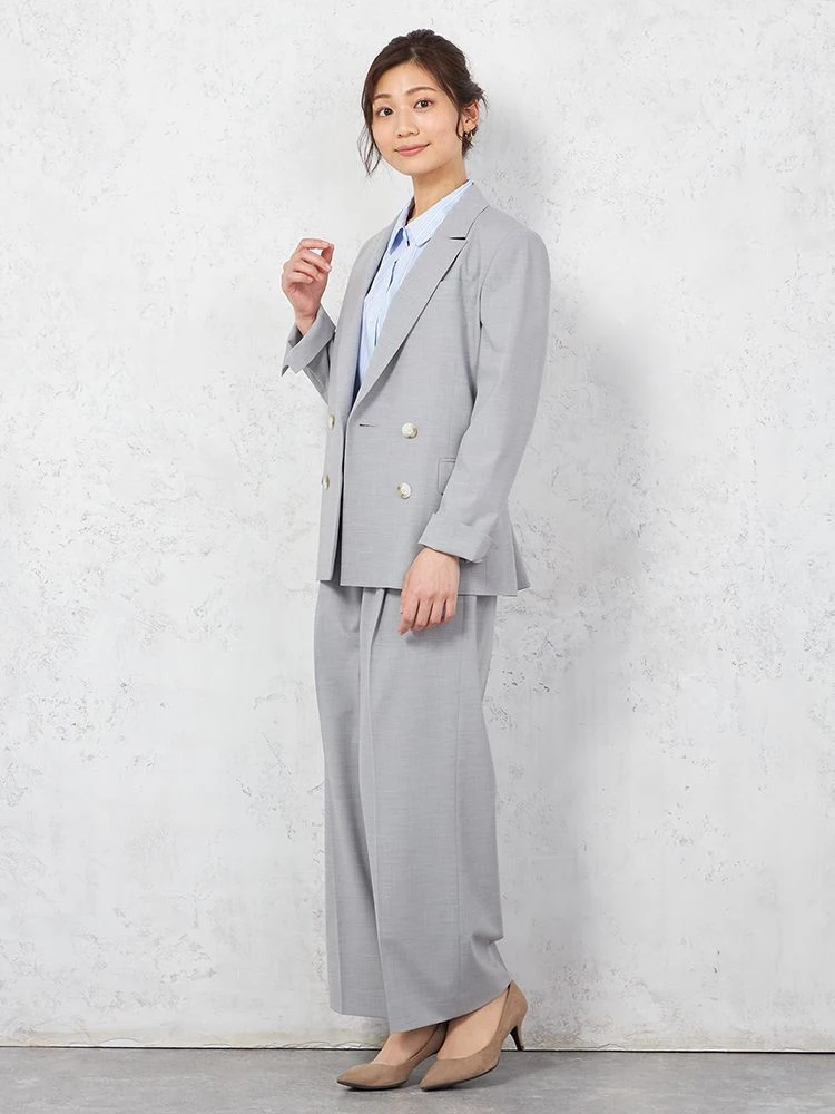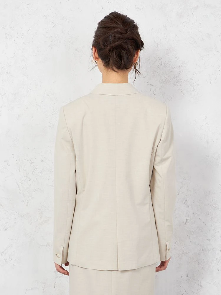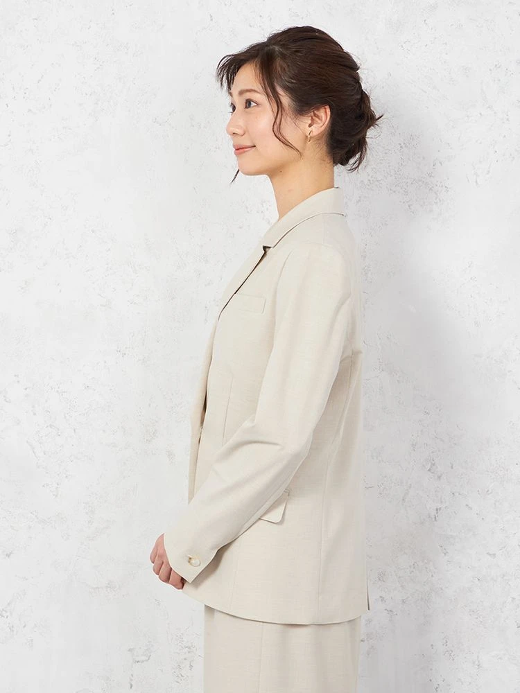 【ウォッシャブル】ノーカラーダブルジャケットリネンライクメランジ生地無地SOFFICE春夏【レディース】