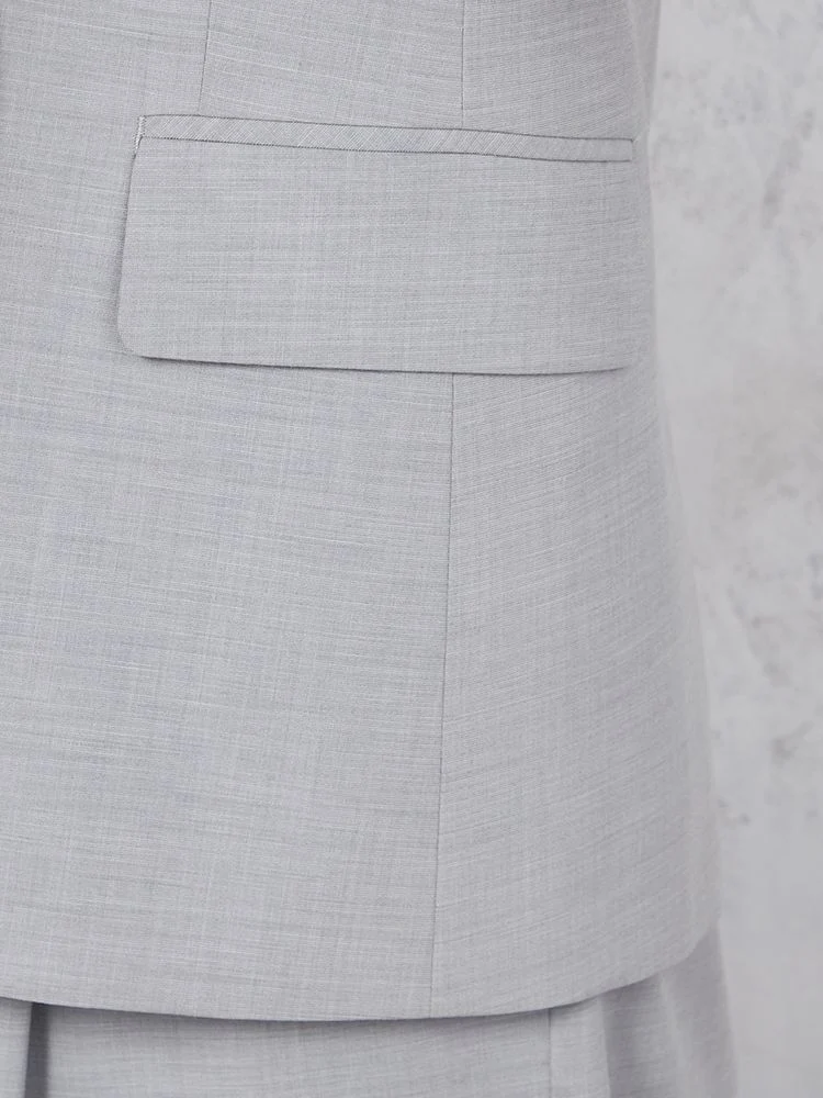 切り込みが1本のセンターベントデザインです。細身でスッキリとしたシルエットが特徴で、快適な着心地を提供します