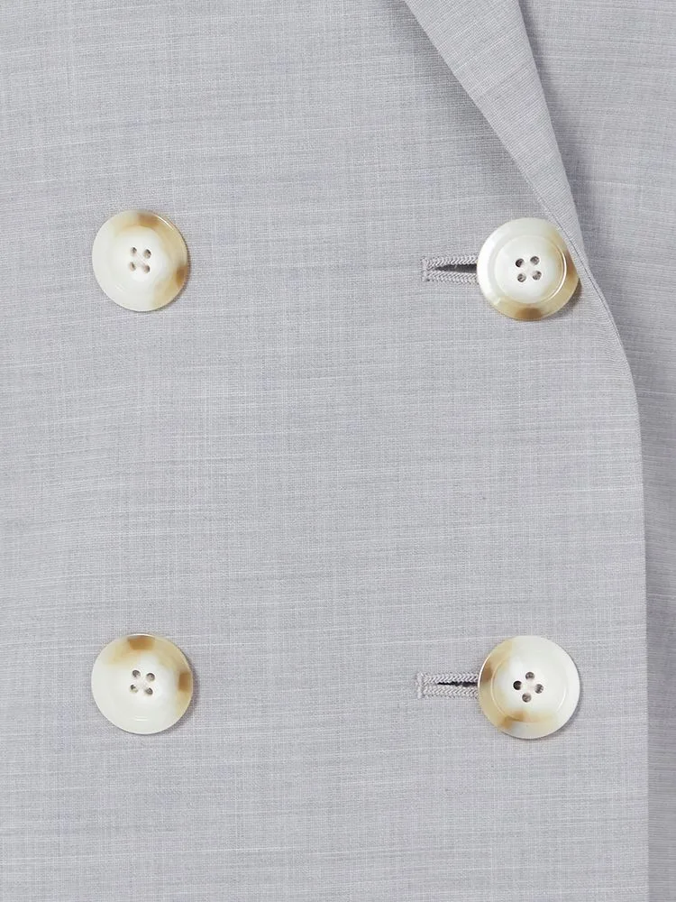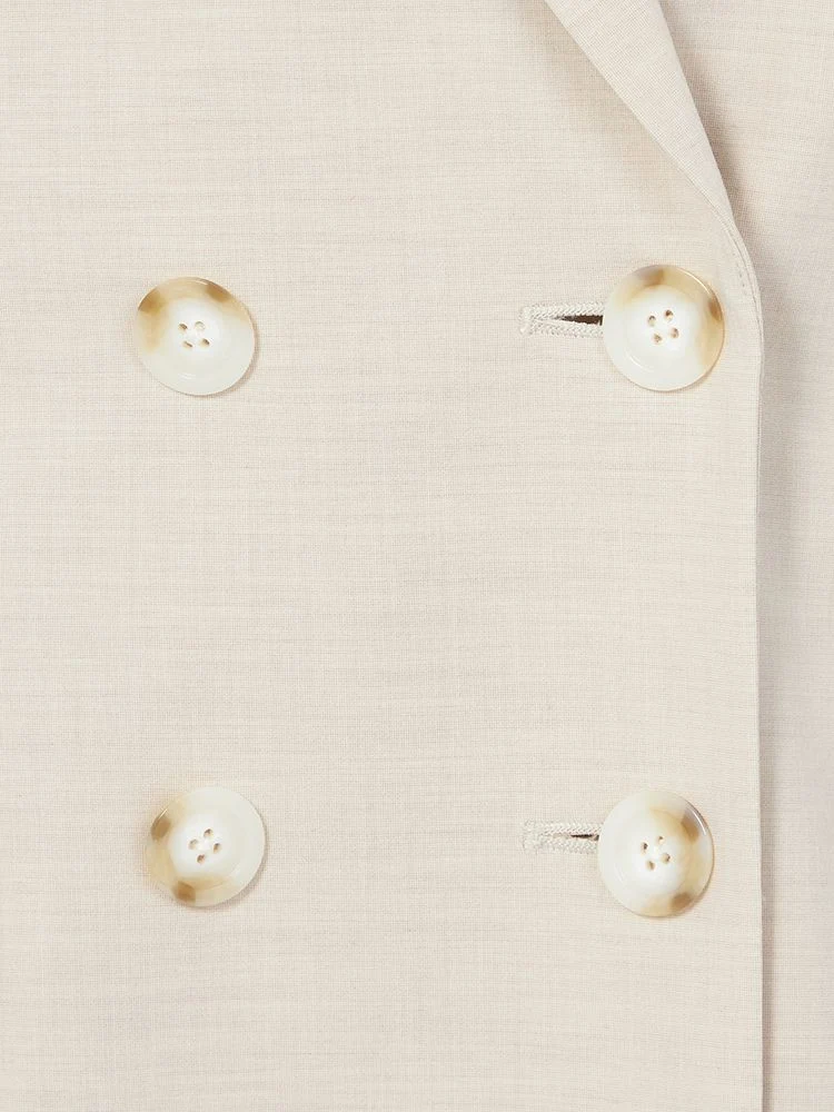 ミックスカラーのボタンがポイントになった、ダブルブレストのジャケットです。