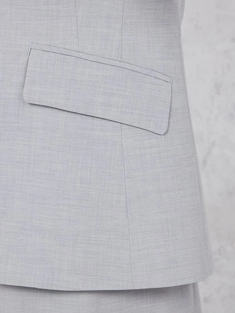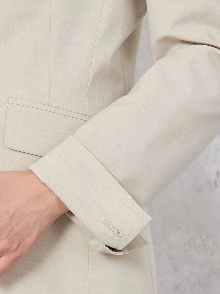 1つボタンのデザインで、シンプルかつスタイリッシュな印象を与えます。洗練されたシルエットが特徴です。