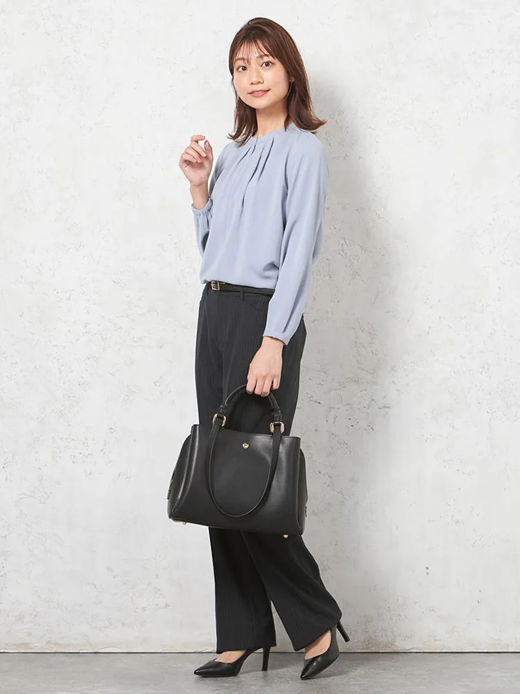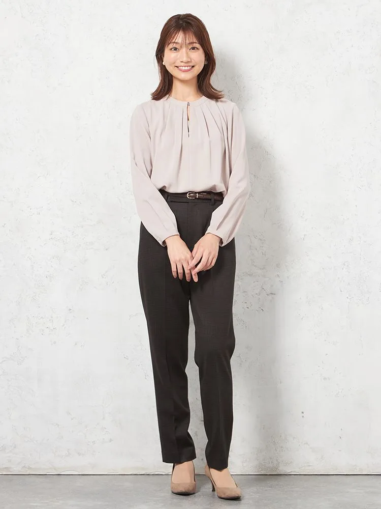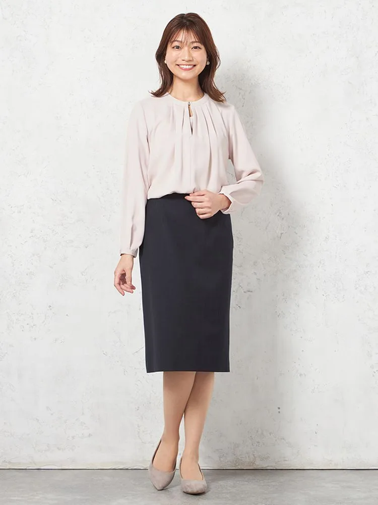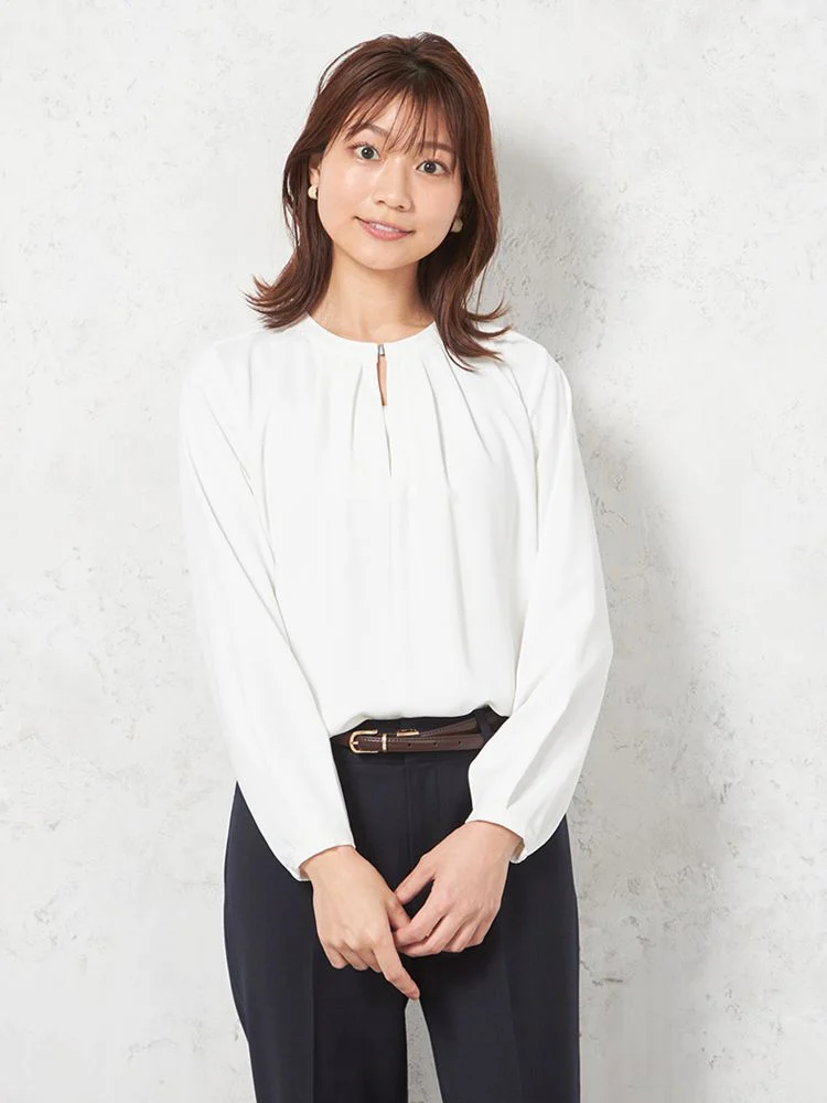 【ウォッシャブル】ブラウス 長袖 クルーネックプルオーバータックブラウス 透けにくい ストレッチ 無地 SOFFICE 通年【レディース】(オフホワイト)