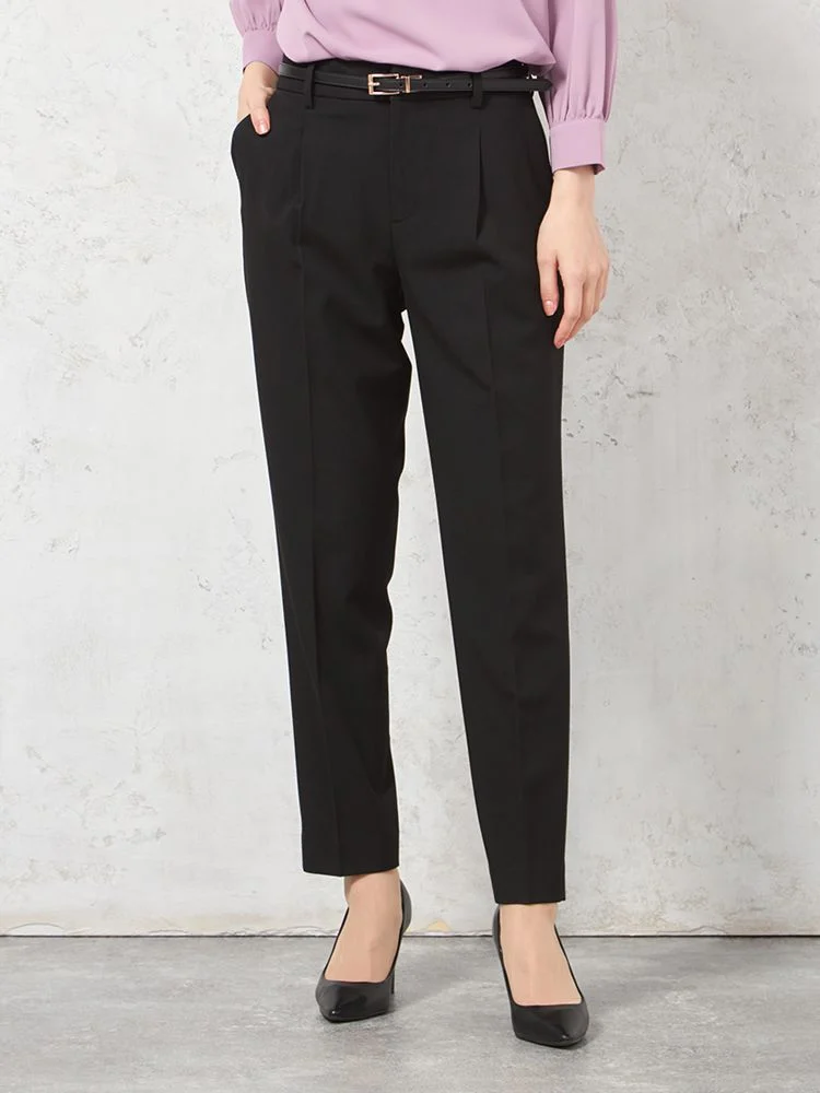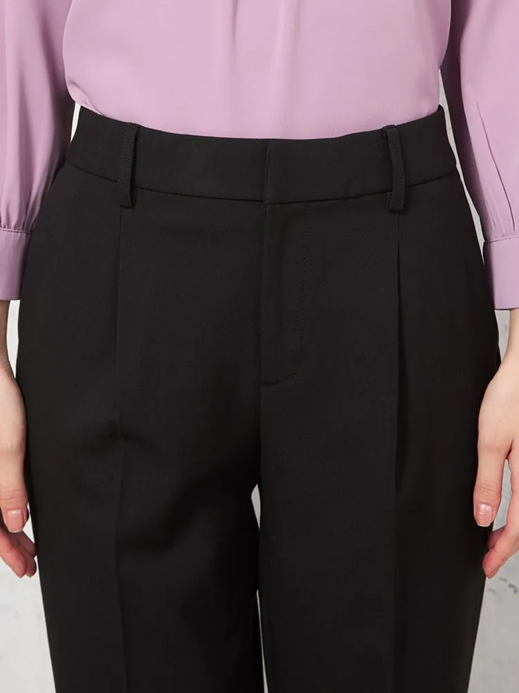 左右に1本ずつ生地の折り込みがあり、標準的なシルエットでシーンを選ばず上品なシルエットが楽しめます。