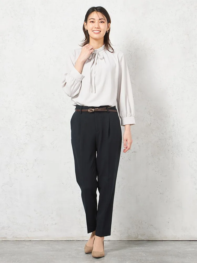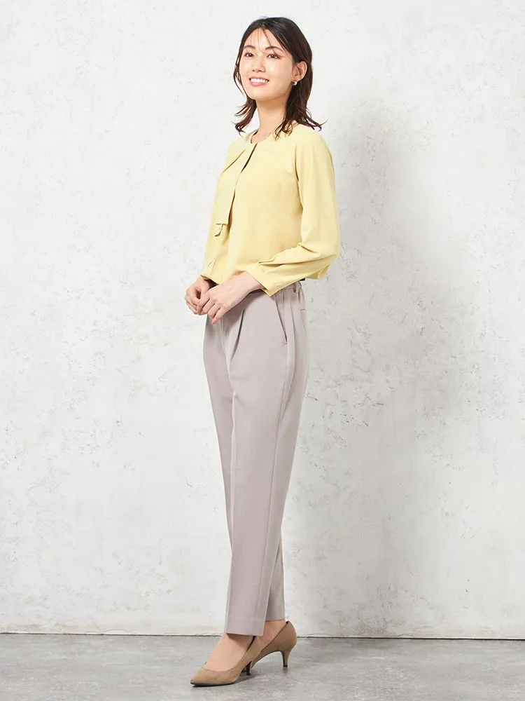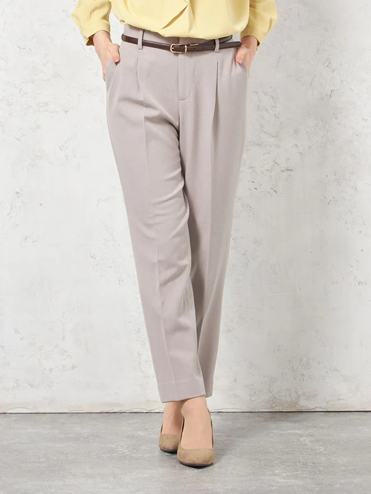 【ウォッシャブル】テーパードパンツ 裏起毛 2WAYストレッチ ワンタック 無地 秋冬【レディース】(ベージュ)