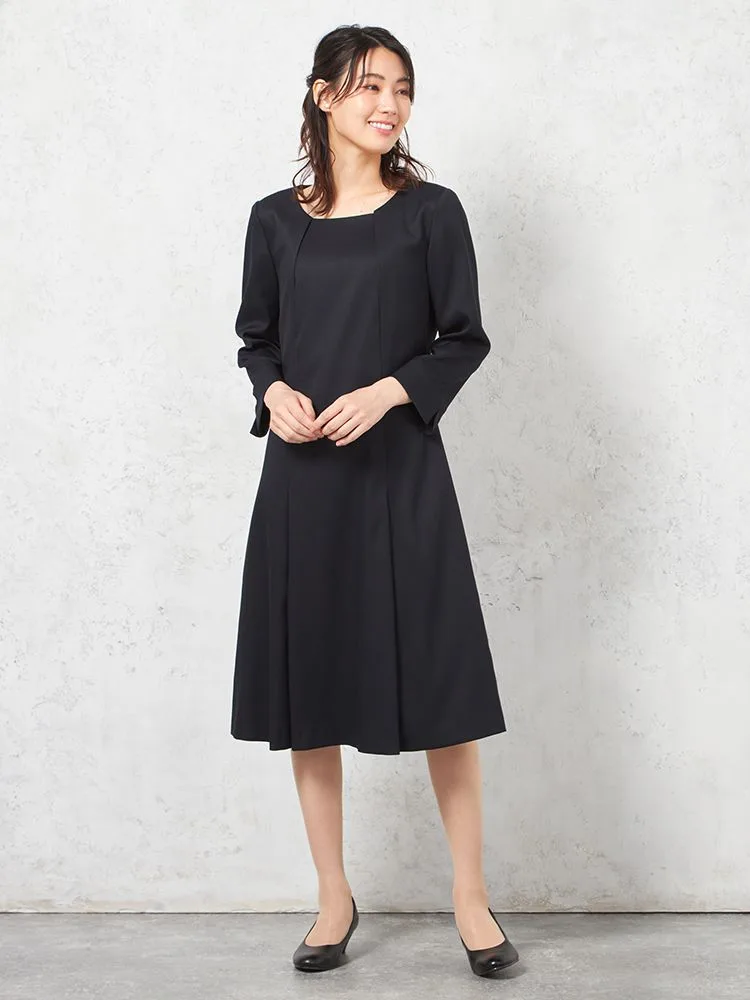 ワンピースはウエストをやや絞り、メリハリのあるシルエットに。