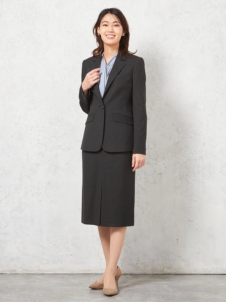1つボタンのデザインで、シンプルかつスタイリッシュな印象を与えます。洗練されたシルエットが特徴です。