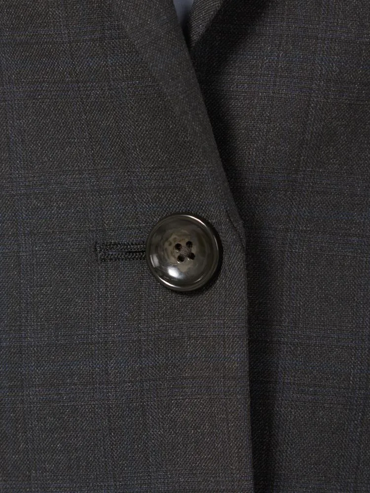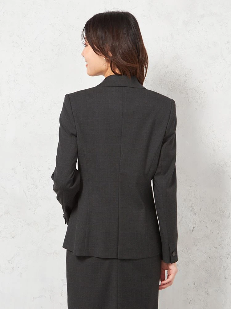 シャドーチェック柄がさりげなく浮かんだシングルジャケット。デザインは一つボタン仕様やスリムシルエットを特徴とした女性らしい仕上がり。