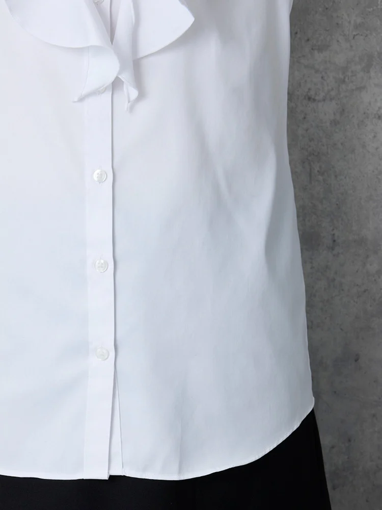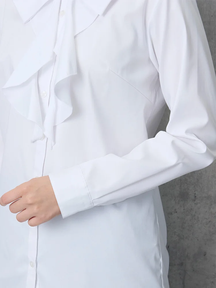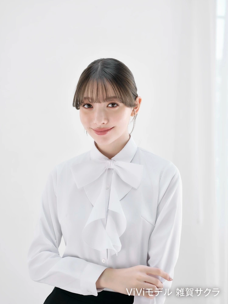 リボンを取り外すと、シンプルなレギュラーカラーの白無地ブラウスとして着用できるので長くご愛用いただけます。