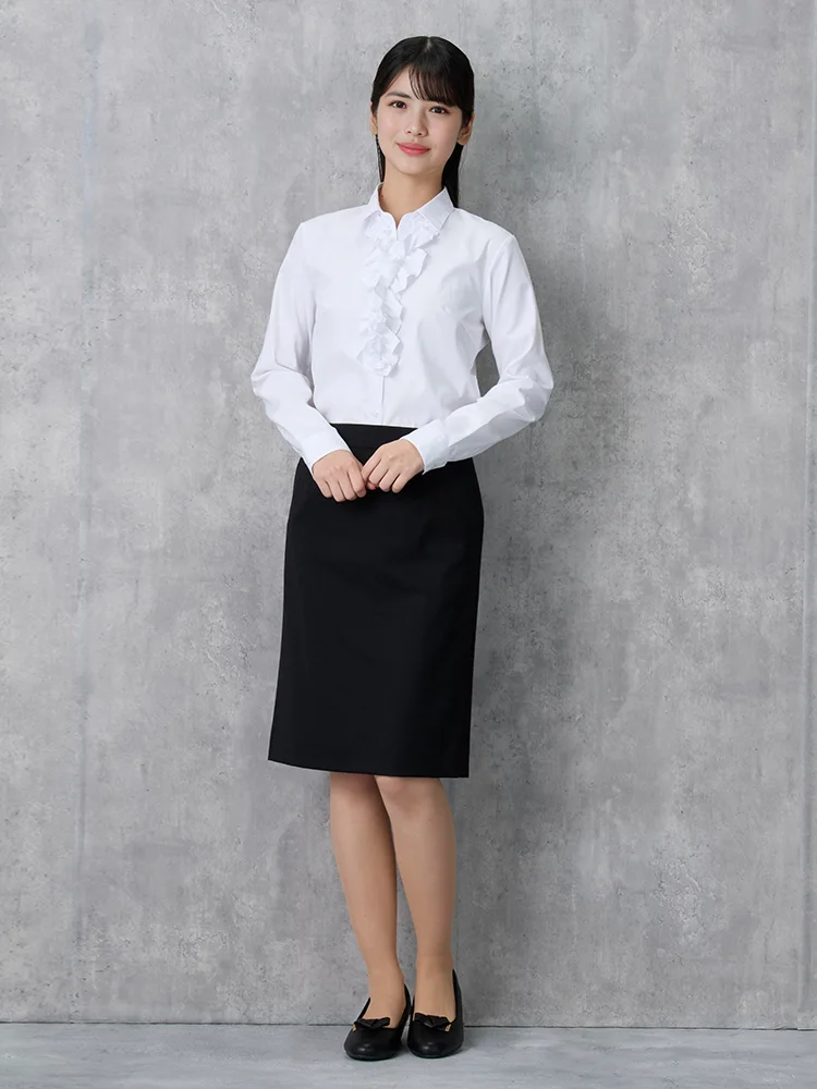 【形態安定】ブラウス長袖GraceField白ブロードスキッパーストレッチリクルート通年【レディース】