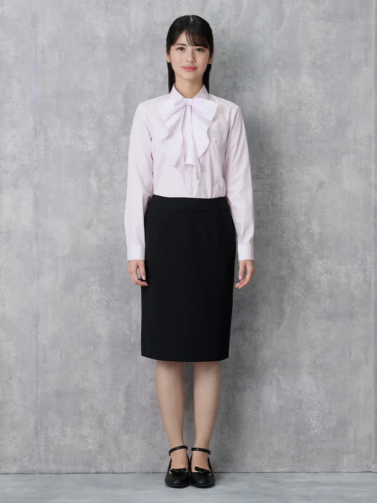 【2WAY】長袖ブラウス取り外しボウタイ付きレギュラーカラー形態安定透け防止織柄無地GraceField通年【レディース】
