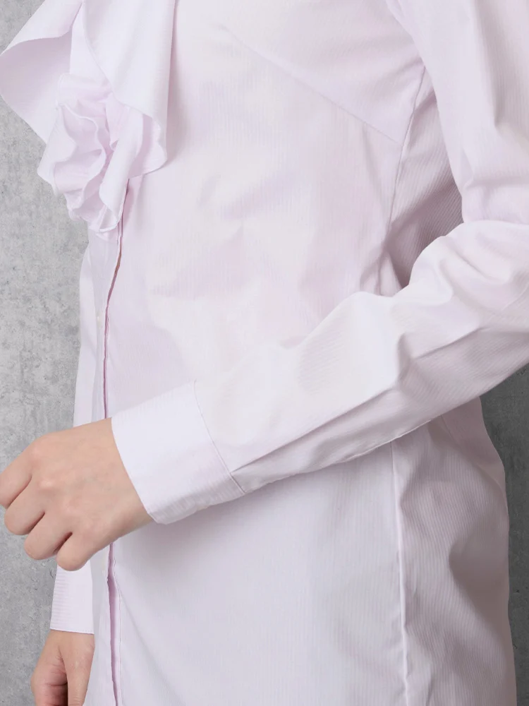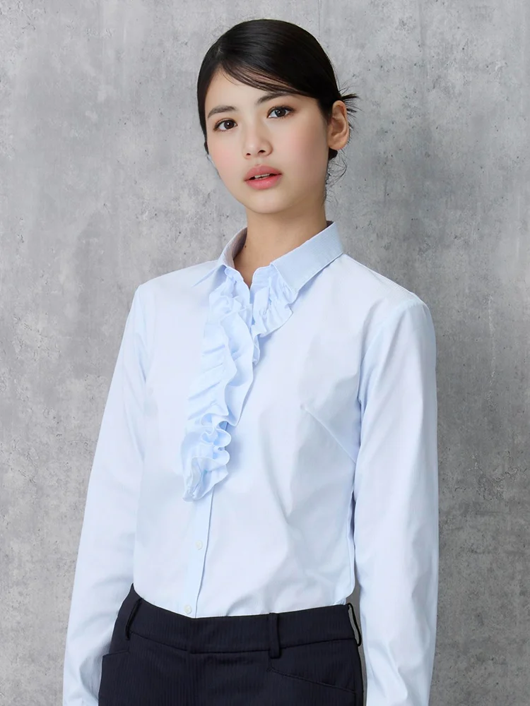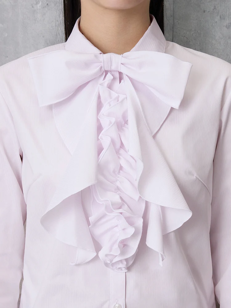 取り外し可能なフリル&リボン付きで、シーンや気分で4 通りの着こなしができる万能ブラウス。