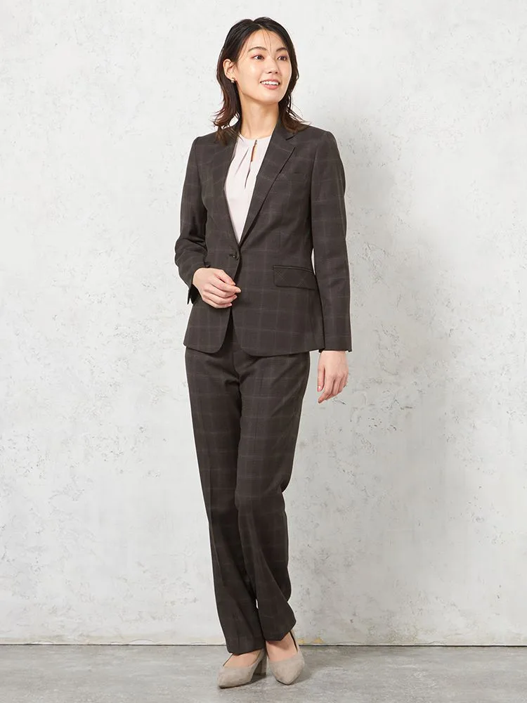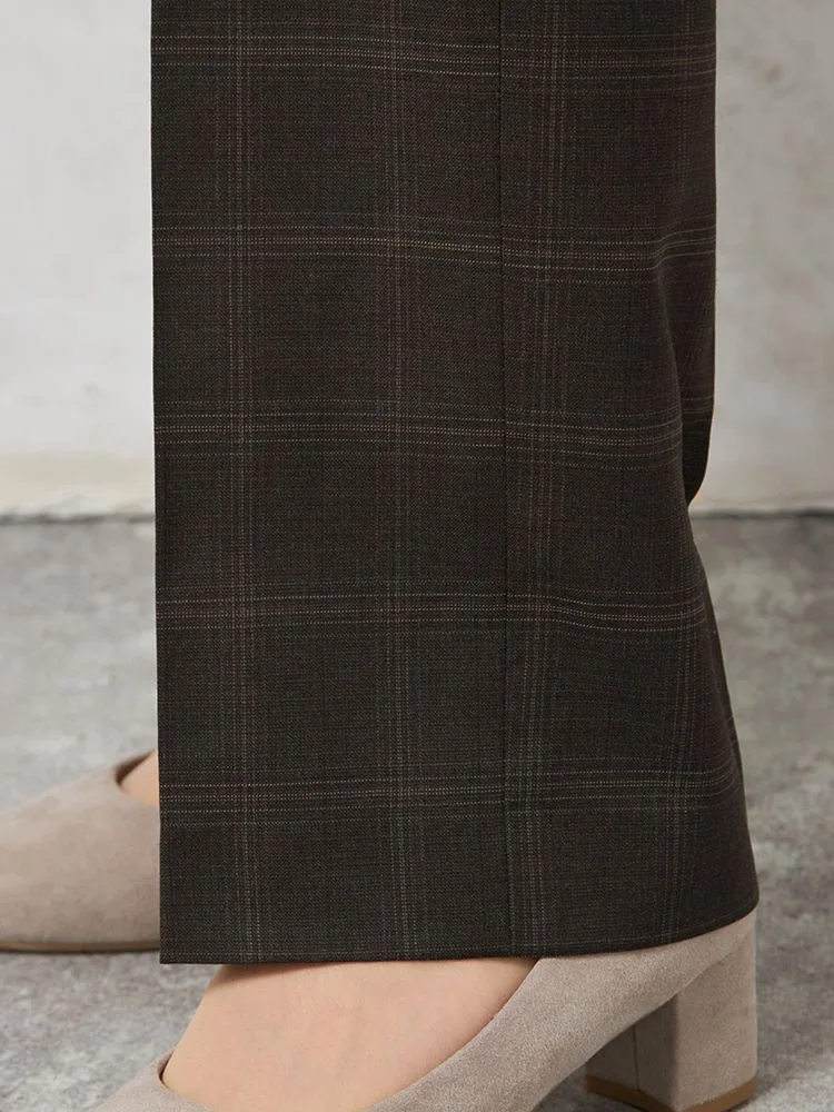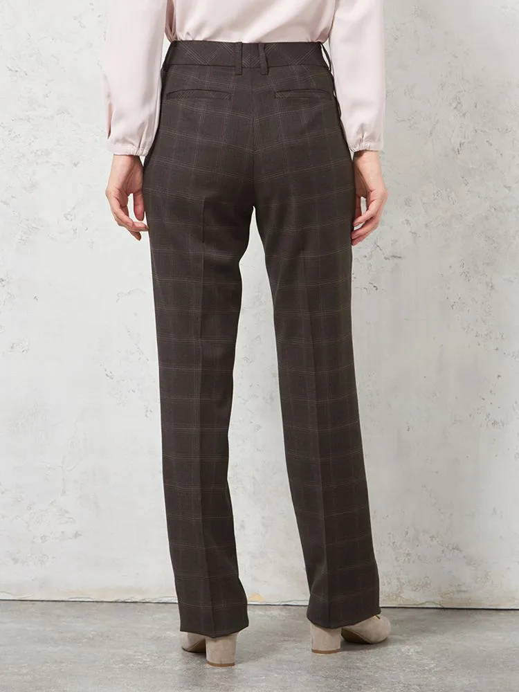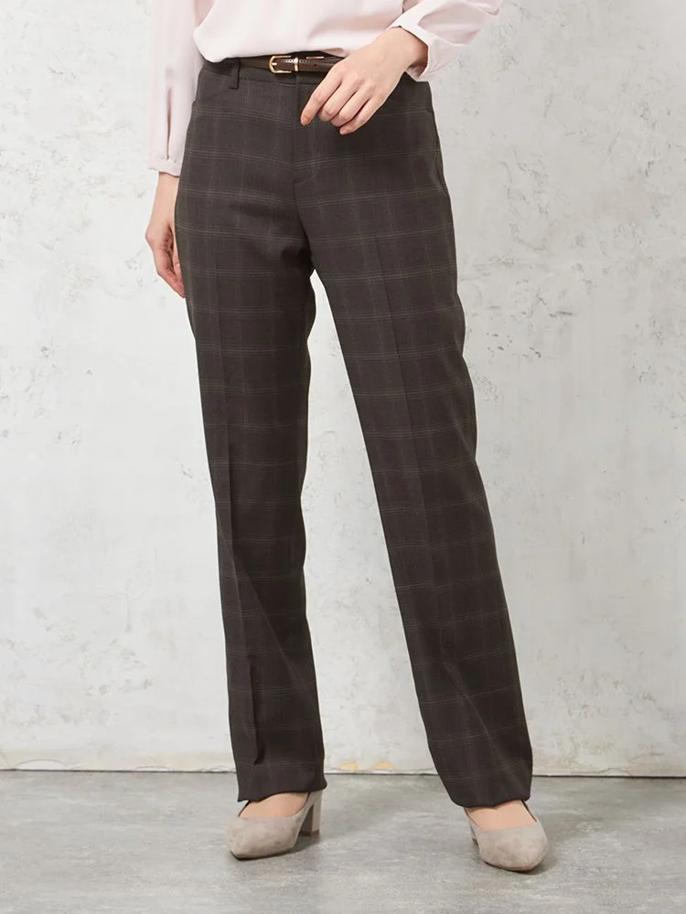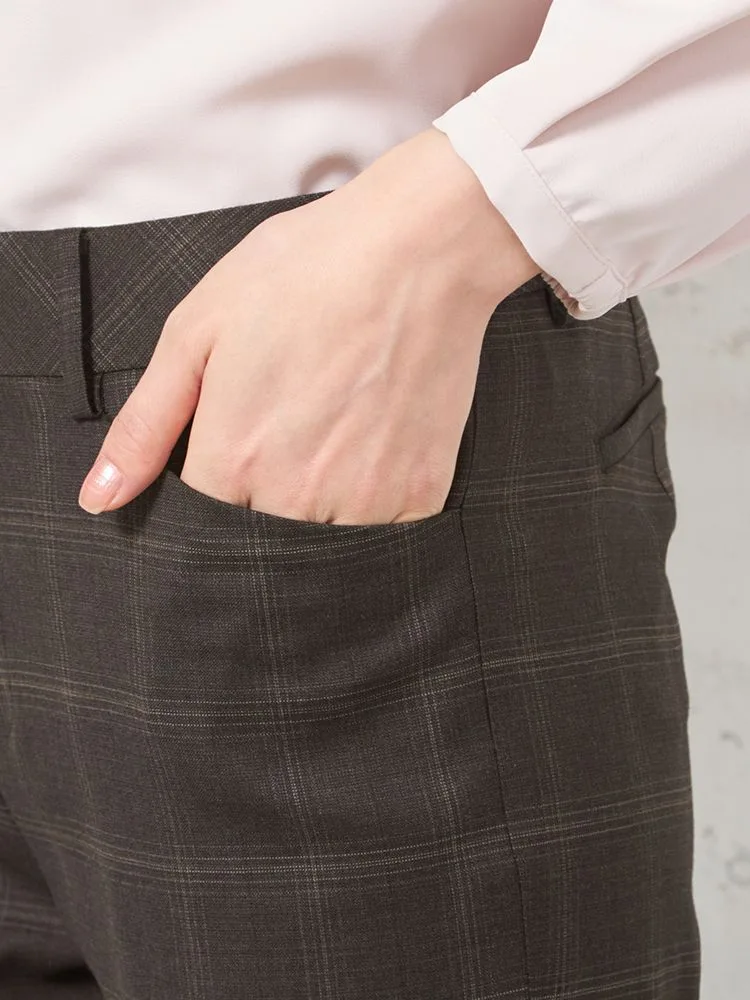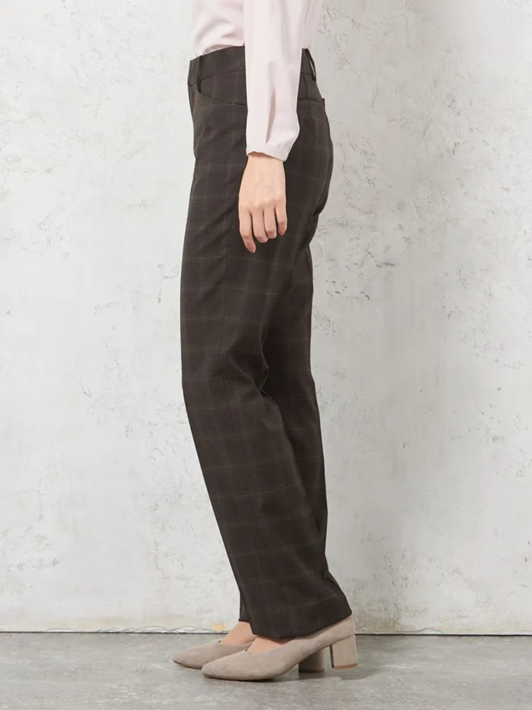 【ストレッチ】パンツ ストレート【REDA FLEXO】ストレッチインベル ブラウン チェック STOVEL&MASON 秋冬【レディース】