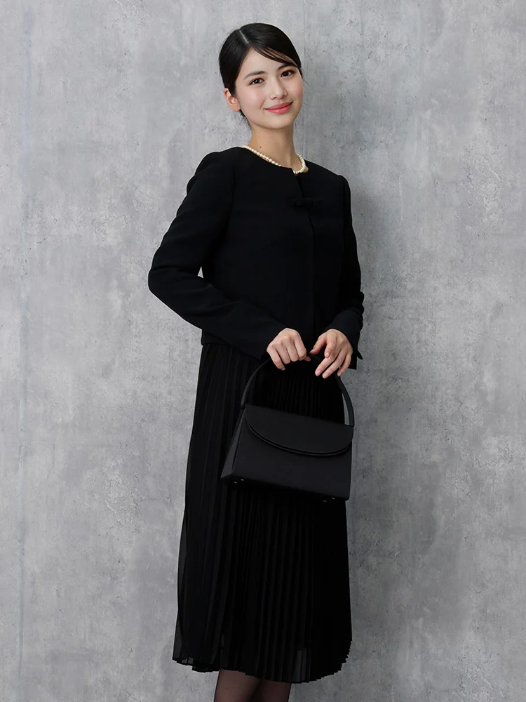 華やかなコサージュやネックレスをプラスすれば、ハレの日にも対応出来る慶弔両用デザインです。