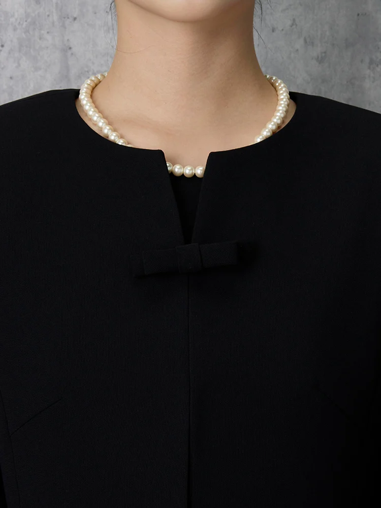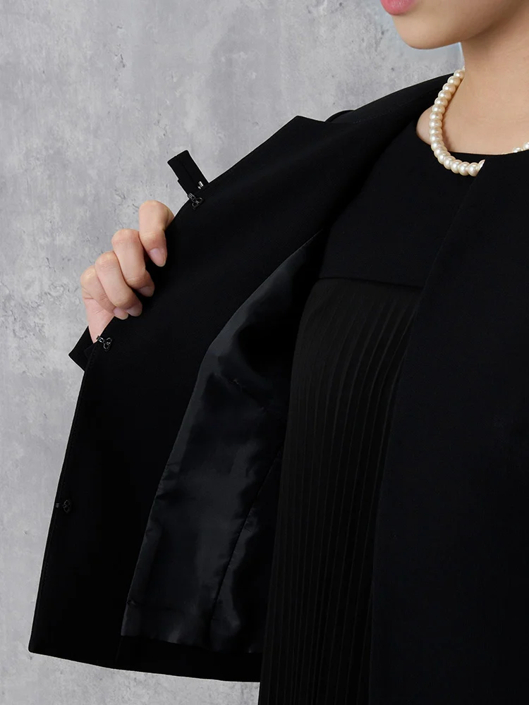 【即納】【WEB限定フォーマル】ロールカラーアンサンブルジャケット/ワンピース黒無地通年礼服【レディース】