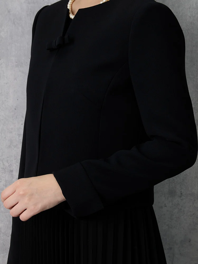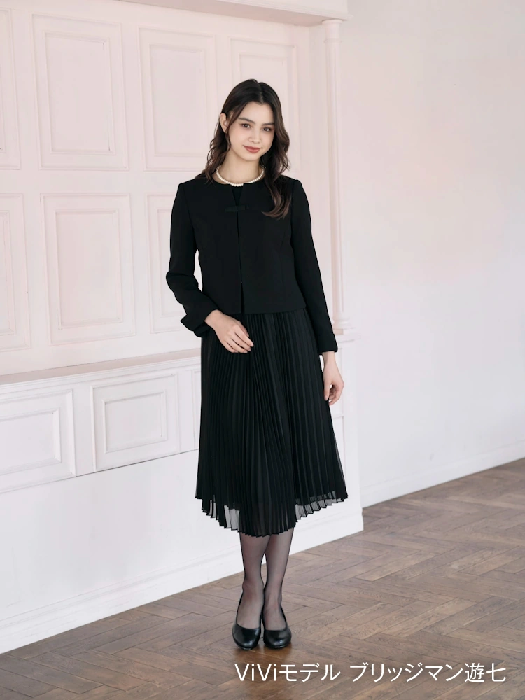 【ネックレス付き】フォーマル アンサンブル プリーツワンピース(慶弔両用)/ノーカラージャケット 黒無地 ViVi 通年 礼服【レディース】