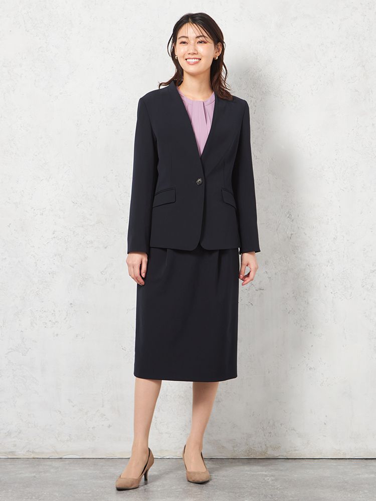 • L.グリーン 【ウォッシャブル】ノーカラージャケット ストレッチ【ビジネス/セレモニーシーン】無地 SOFFICE 通年【レディース】 1281700096