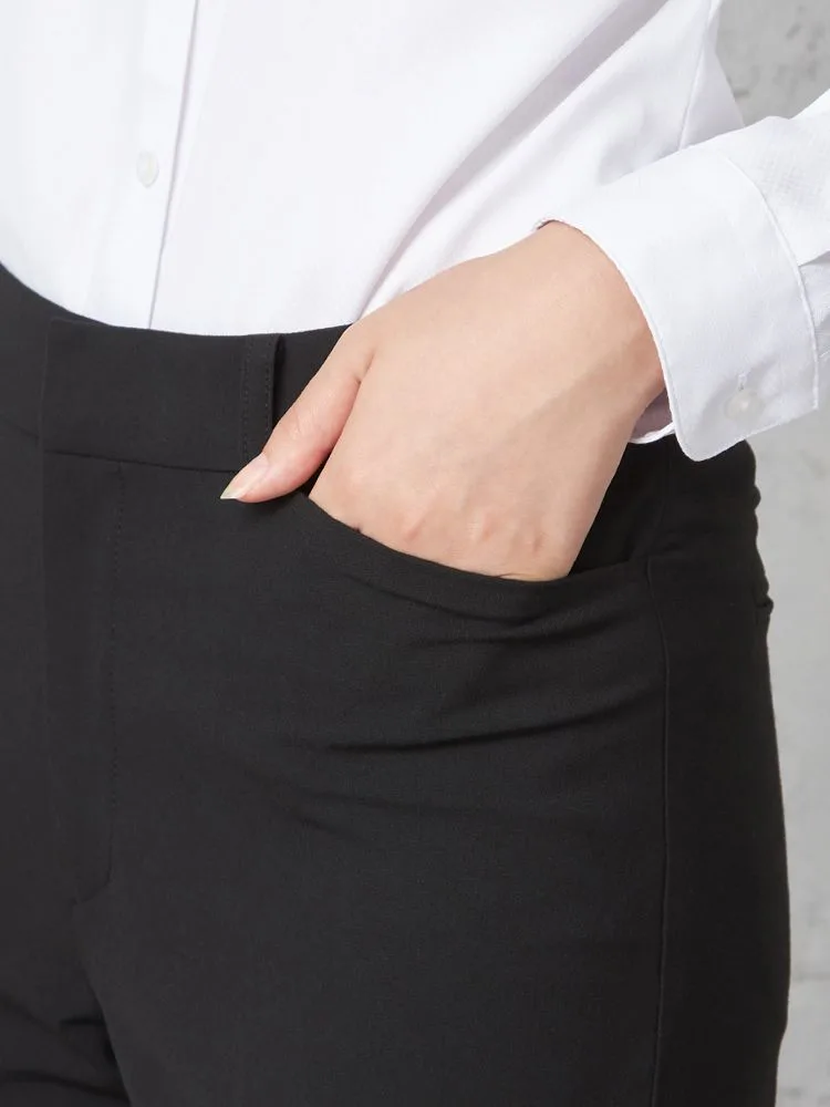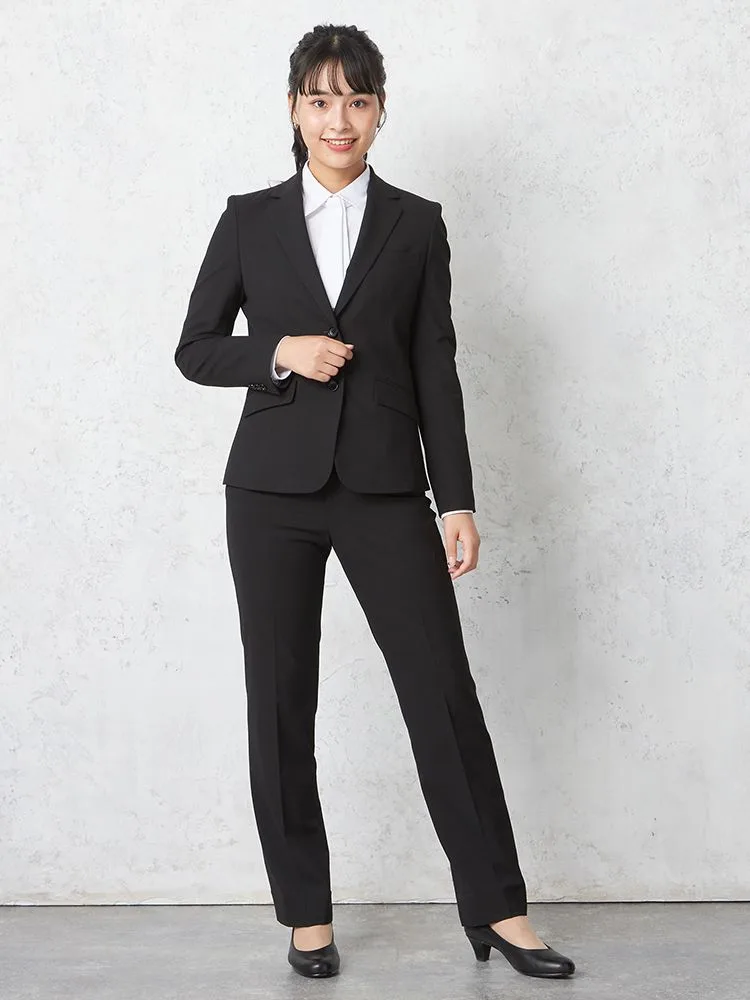 【ウォッシャブル】パンツ ストレート ストレッチ 黒無地 S&M Knights bridge 通年【レディース】