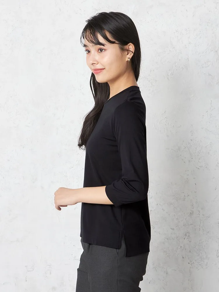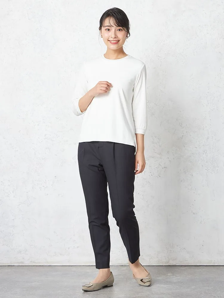 【INDIVI】カットソー 7分袖 シルケット天竺 クルーネックカットソー ウォッシャブル 無地 通年【レディース】(オフホワイト)