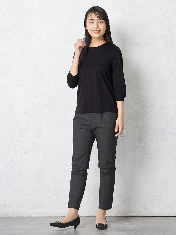 シンプルでコーディネートに合わせやすいデザインが幅広く活躍するラウンドネックカットソー。