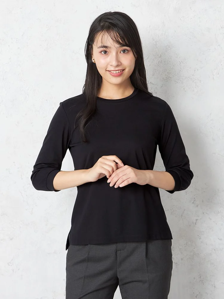 【SOFFICE】デシン配色7分袖ブラウスニット・カットソー無地ウォッシャブル通年【レディース】