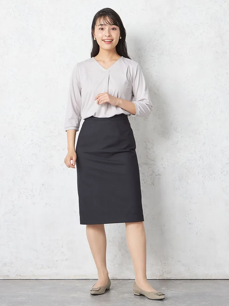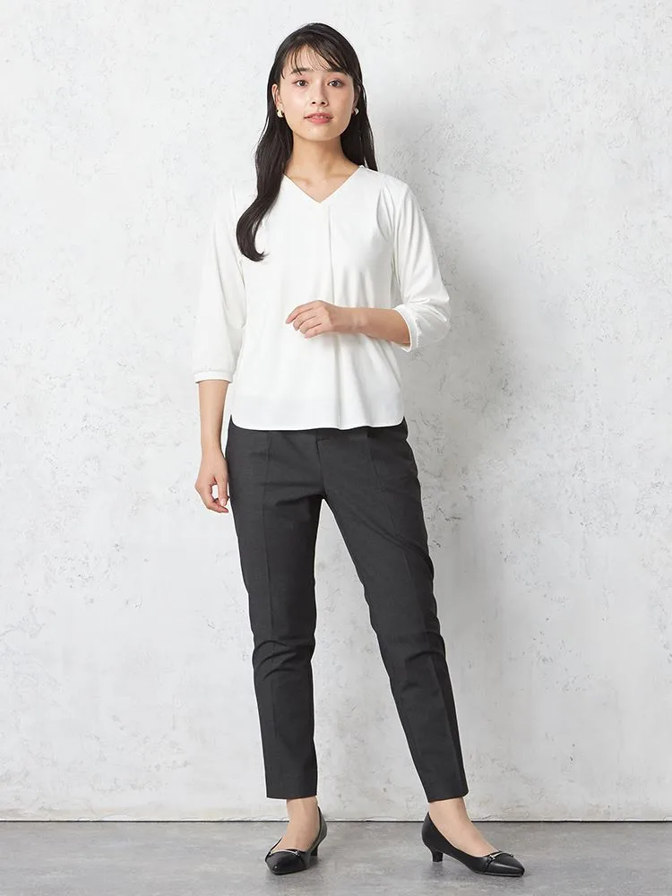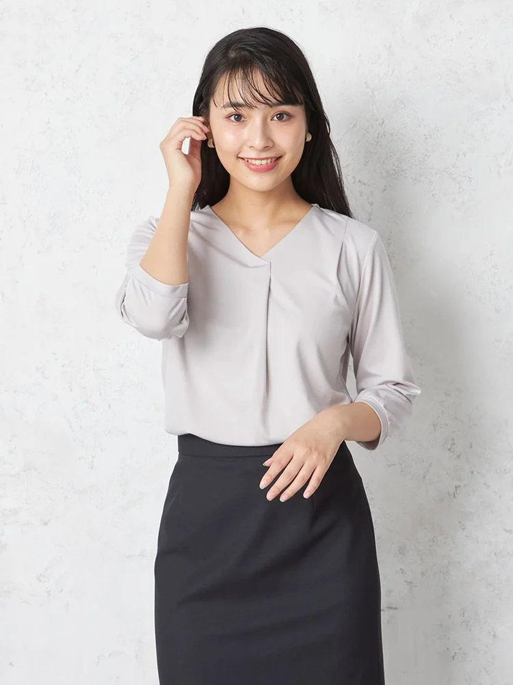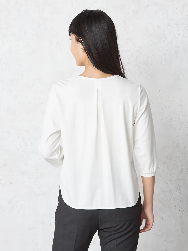 滑らかで肌触りの良いシルキーな素材感が快適な着心地の七分袖Vネックカットソー。