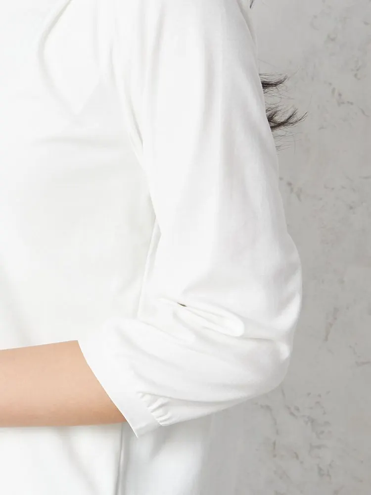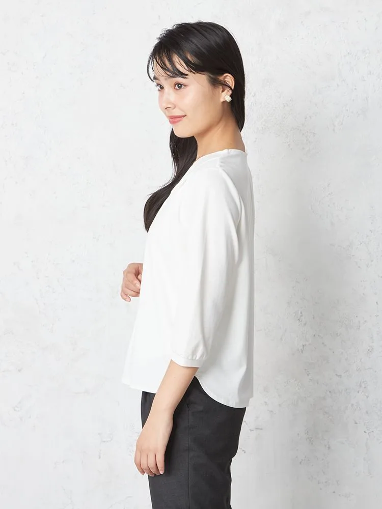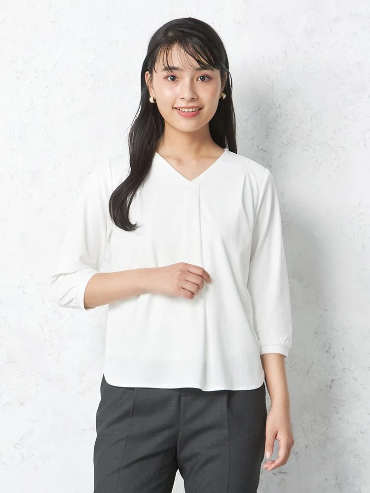 • オフホワイト 【INDIVI】カットソー 7分袖 シルケット天竺 V開きトップス ウォッシャブル 無地 通年【レディース】 1285403461