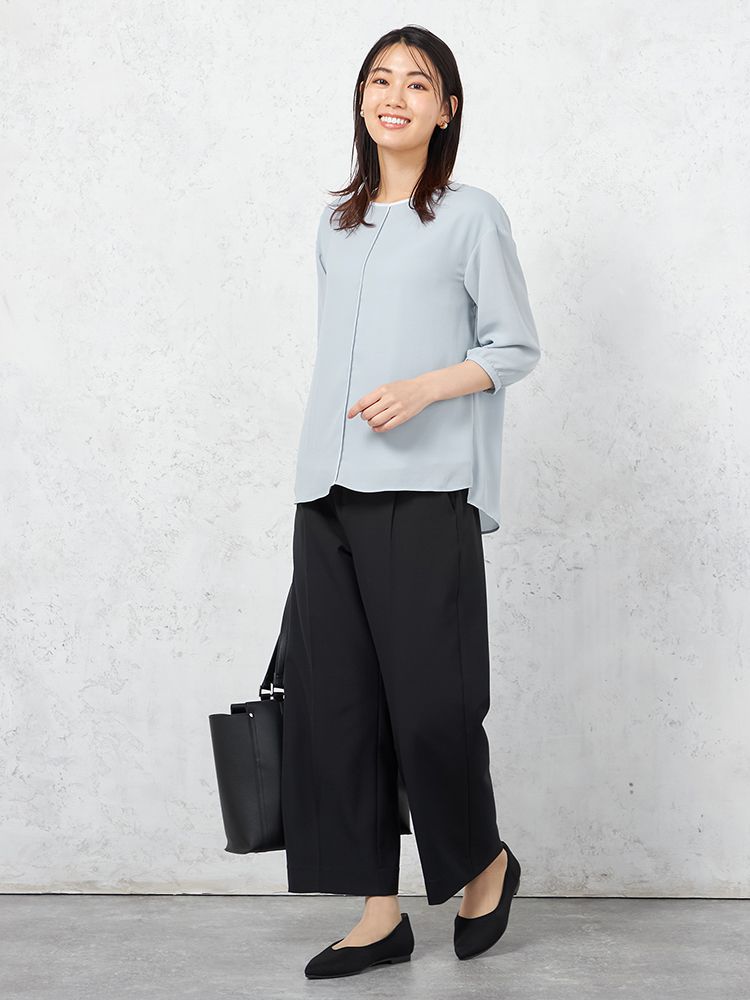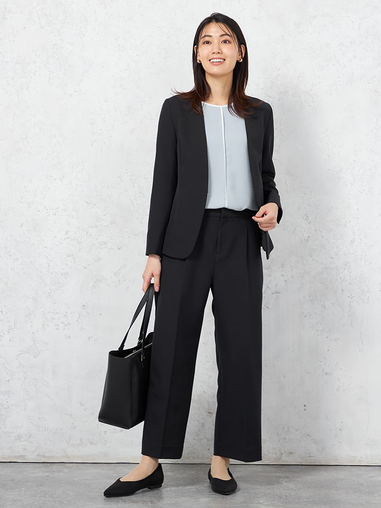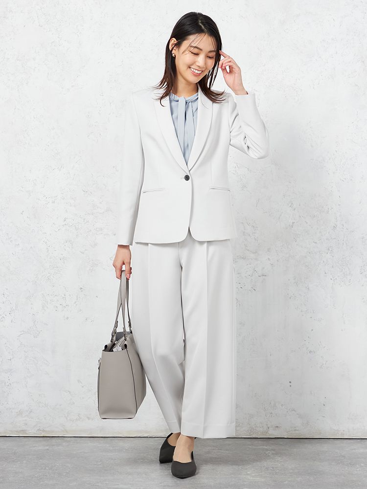 ジャケットに合わせるだけで、いつものオフィスコーデがエレガントな印象に早替わり。