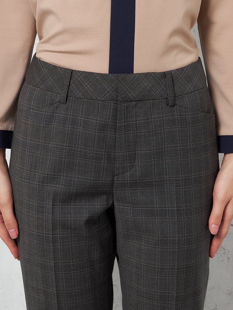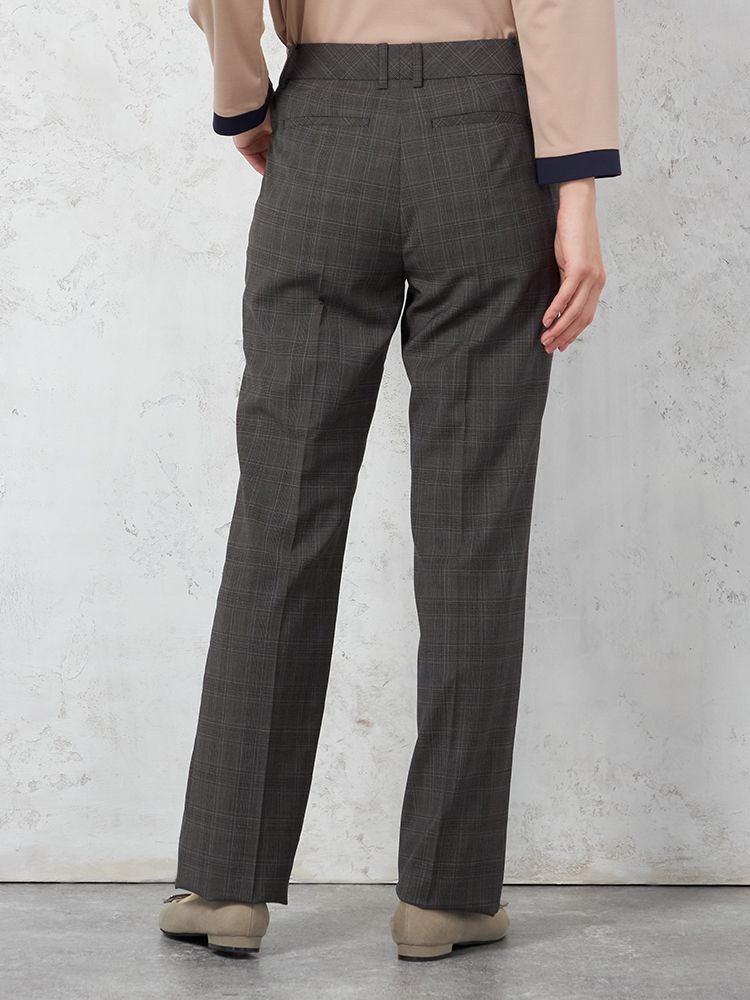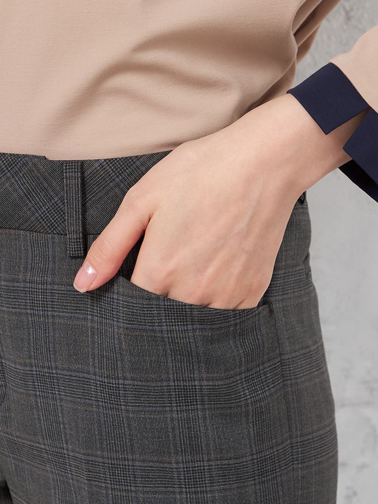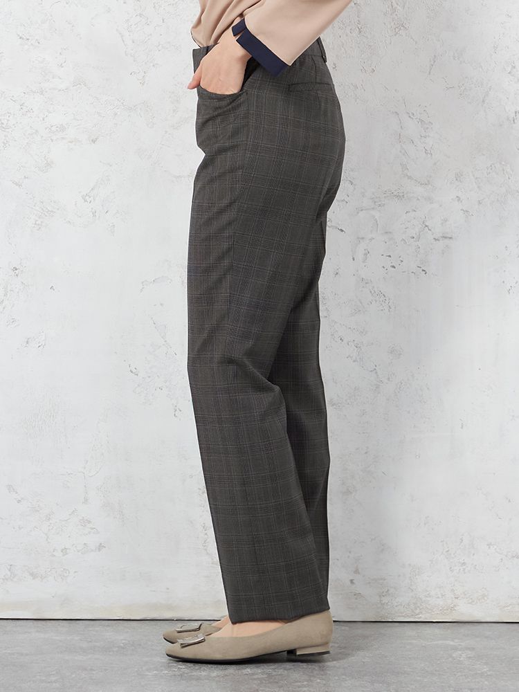 落ち着いた印象で穿きこなせる、グレンチェック柄のスラックスです。