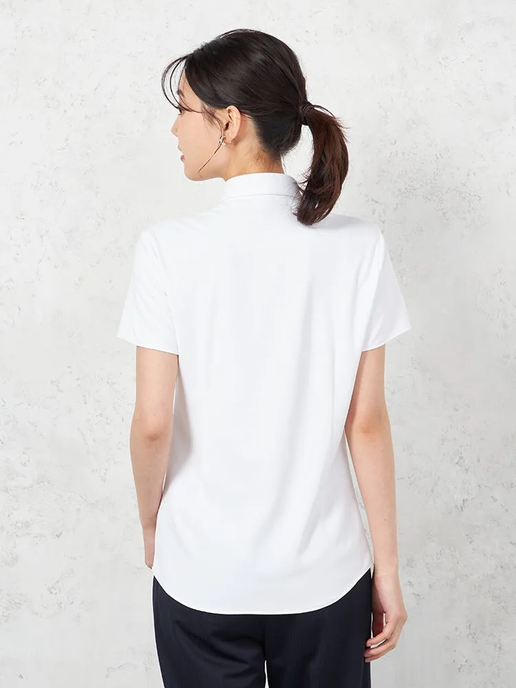 【完全ノーアイロン】ブラウス半袖シャツスキッパー【アイスライブ】冷感吸汗速乾白無地i-shirt春夏【レディース】