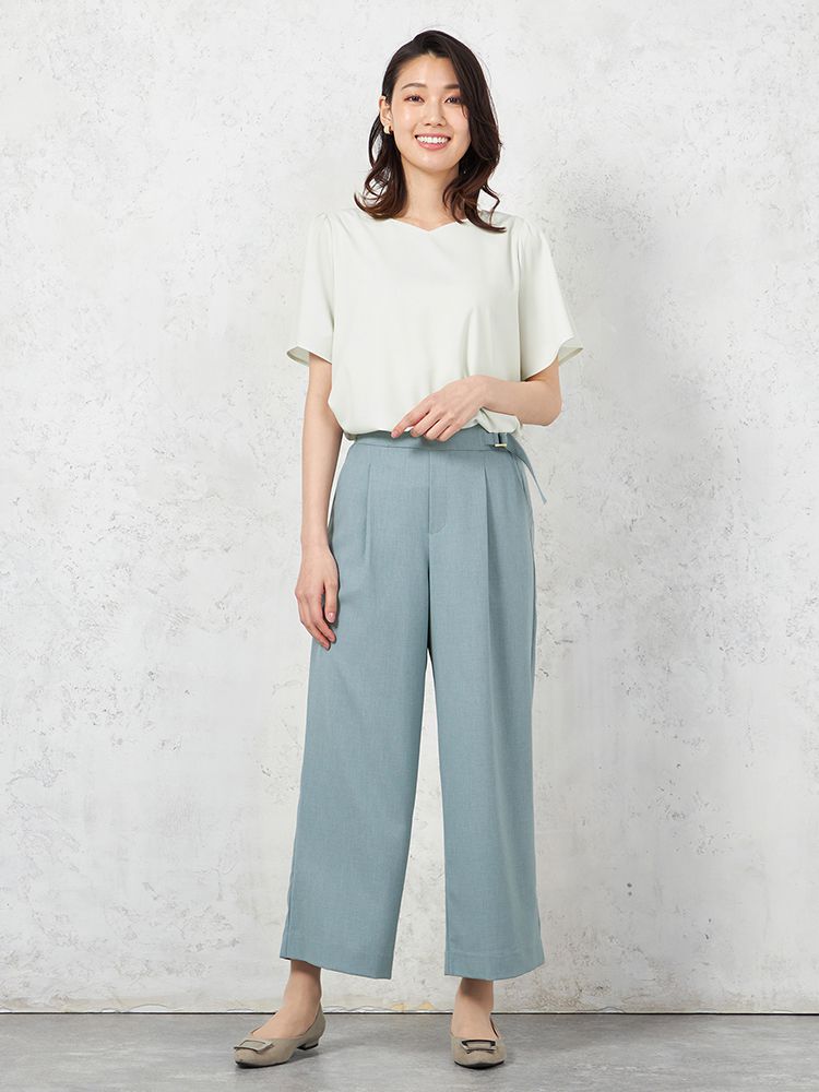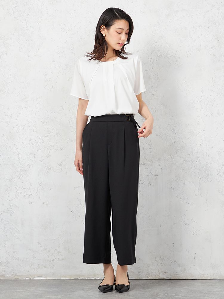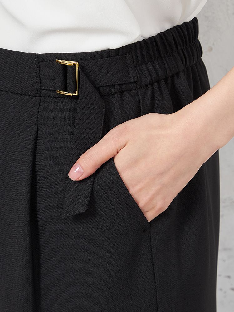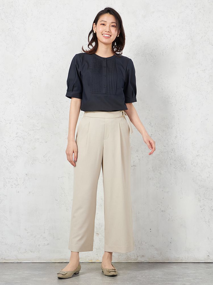 フロントにタックを施して、腰回りにゆとりもプラス。