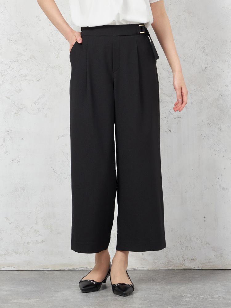 ウエストにあしらわれたサイドのタブが目を引くワイドパンツです。